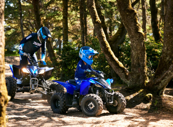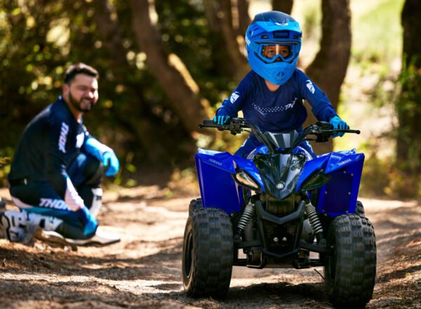 Safety comes first, and the YFZ50 has a range of features that give parents a high degree of control. Speed can be limited by the throttle screw and rev limiter switch – and a lanyard attached to a tether switch can cut the engine instantly.