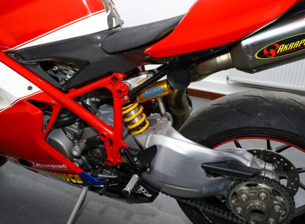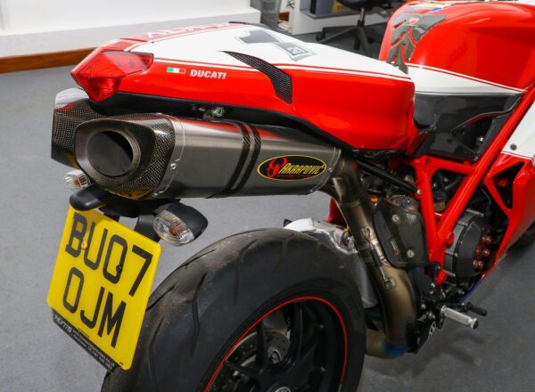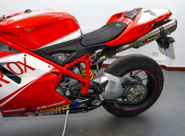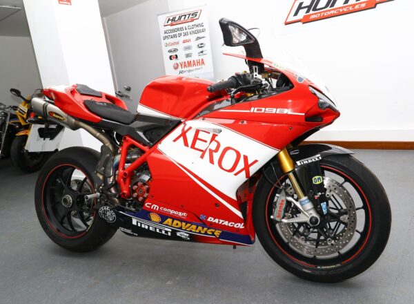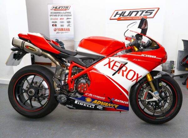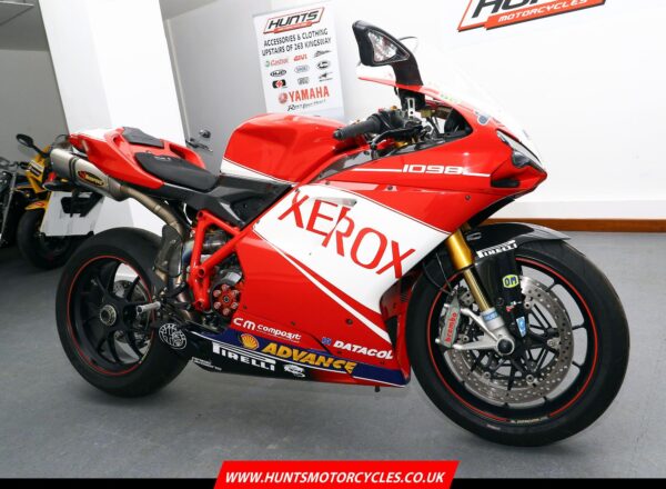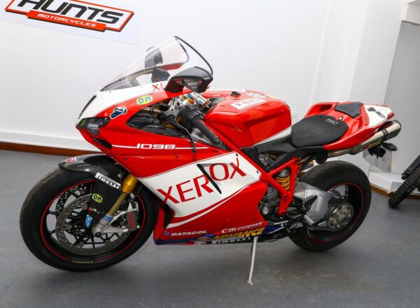 2007, ’07 reg. Ducati 1098S. Only 6,018 miles from new. Complete with Öhlins suspension, Brembo brakes, Marchesini wheels, carbon clutch cover, heel and exhaust guards, titanium Akrapovic exhaust system plus Troy Bayliss Xerox race replica paintwork by Dream Machine. Timing belt service carried out in December 2025. Looks, sounds and rides superb. Fantastic value at £10,495. PLUS : WE’LL DELIVER TO YOUR DOOR ANYWHERE IN MAINLAND UK FOR JUST £99! – Part-Ex and finance/PCP available, please ask for details. Call Hunts Motorcycles on 0161-432 1303. Please note: Some of our stock is stored off-site so please call us before setting off to view any of our pre-owned bikes.