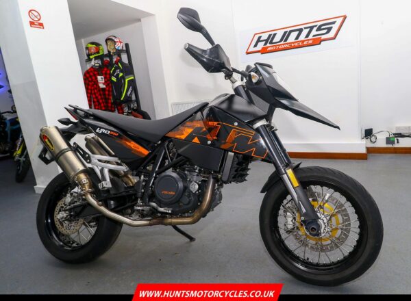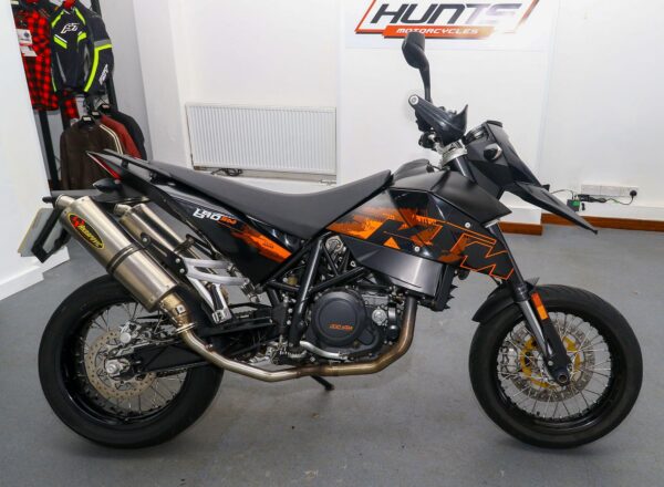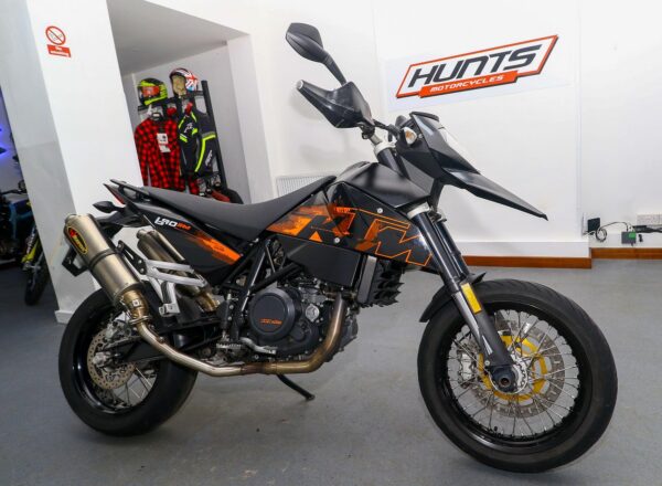 2007, ’07 reg. KTM 690 LC4 Supermoto. Complete with handguards and Akrapovic pipes. Sounds great and loads of fun to ride. Superb value at just £4,195. PLUS : WE’LL DELIVER TO YOUR DOOR ANYWHERE IN MAINLAND UK FOR JUST £99! – Part-Ex and finance/PCP available, please ask for details. Call Hunts Motorcycles on 0161-432 1303. Please note: Some of our stock is stored off-site so please call us before setting off to view any of our pre-owned bikes.