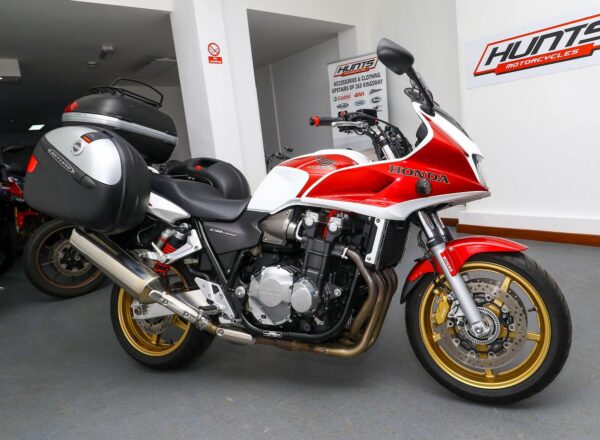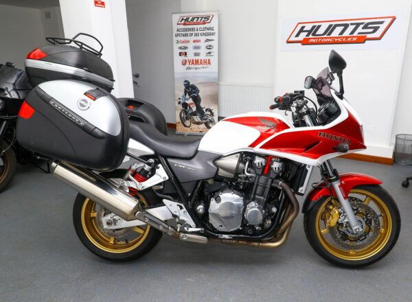 2009 Honda CB1300S ABS. One owner and just 9,924 miles from new. Complete with Givi panniers and top box with luggage rack, Oxford heated grips, Garmin Zumo sat nav, radiator guard and MRA windscreen with deflector. Beautifully looked after throughout (two new tyres will be fitted before delivery). Nice CB1300’s are getting hard to find and this one is lovely. £6,995. PLUS : WE’LL DELIVER TO YOUR DOOR ANYWHERE IN MAINLAND UK FOR JUST £99! – Part-Ex and finance/PCP available, please ask for details. Call Hunts Motorcycles on 0161-432 1303. Please note: Some of our stock is stored off-site so please call us before setting off to view any of our pre-owned bikes.
