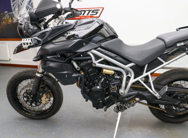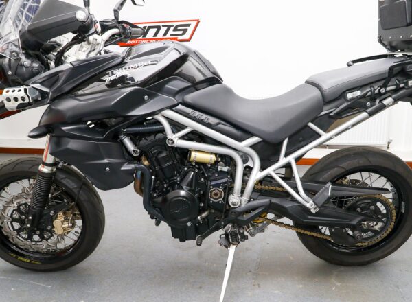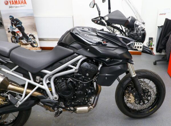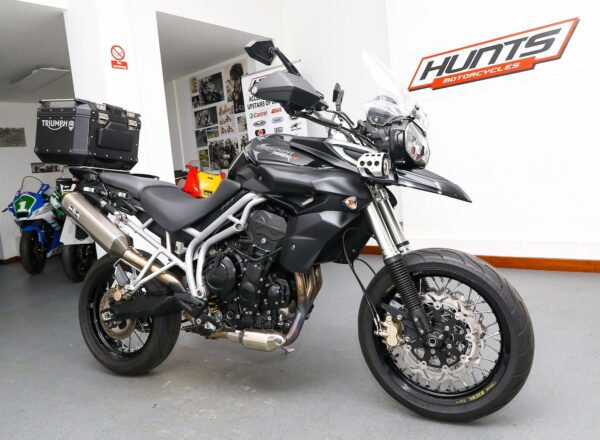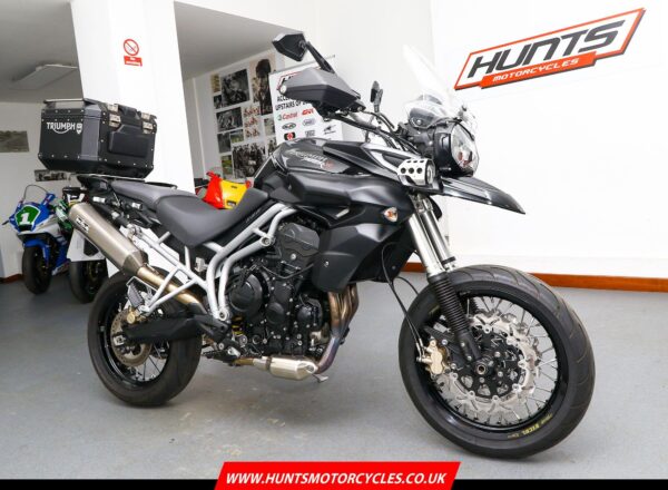 2011, ’60 reg. Triumph Tiger 800 XC. Complete with spoked supermoto style wheels, fork gaiters, hand guards, high front fender, wavy discs, heated grips, USB socket, spot lights, top box and Remus exhaust. Looks, sounds and rides great. Excellent value at £4,395. PLUS : WE’LL DELIVER TO YOUR DOOR ANYWHERE IN MAINLAND UK FOR JUST £99! – Part-Ex and finance/PCP available, please ask for details. Call Hunts Motorcycles on 0161-432 1303. Please note: Some of our stock is stored off-site so please call us before setting off to view any of our pre-owned bikes.