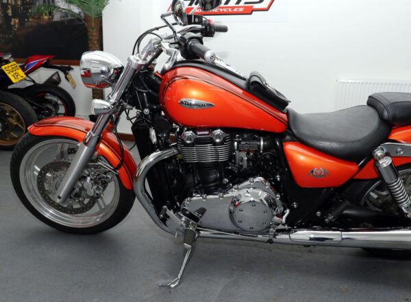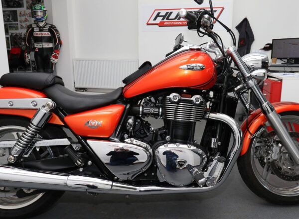 2012, ’12 reg. Triumph Thunderbird 1600 ABS. ONLY 5,370 MILES from new. Complete with forward controls, tank pouch and pillion seat. Looks superb and great fun to ride. Exceptional value at £6,995. PLUS : WE’LL DELIVER TO YOUR DOOR ANYWHERE IN MAINLAND UK FOR JUST £99! – Part-Ex and finance/PCP available, please ask for details. Call Hunts Motorcycles on 0161-432 1303. Please note: Some of our stock is stored off-site so please call us before setting off to view any of our pre-owned bikes.