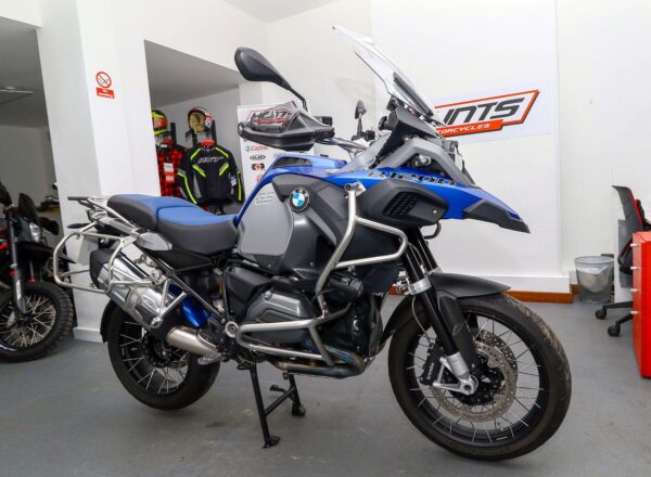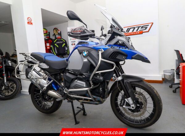 2015, ’15 reg. BMW R1200GS Adventure. Finished in Racing Blue Metallic Matt and complete with Comfort, Touring and Dynamic packages, ESA, LED headlight and indicators, daytime running lights, keyless ignition, Gearshift Assist Pro, riding modes, sat nav preparation, heated grips, RDC, cruise control, BMW alarm system, engine bars, spot lights, hugger guard, hand and side deflectors plus pannier mounting rails. Beautifully looked after and ready to ride. Superb value at £7,795. PLUS : WE’LL DELIVER TO YOUR DOOR ANYWHERE IN MAINLAND UK FOR JUST £99! – Part-Ex and finance/PCP available, please ask for details. Call Hunts Motorcycles on 0161-432 1303. Please note: Some of our stock is stored off-site so please call us before setting off to view any of our pre-owned bikes.