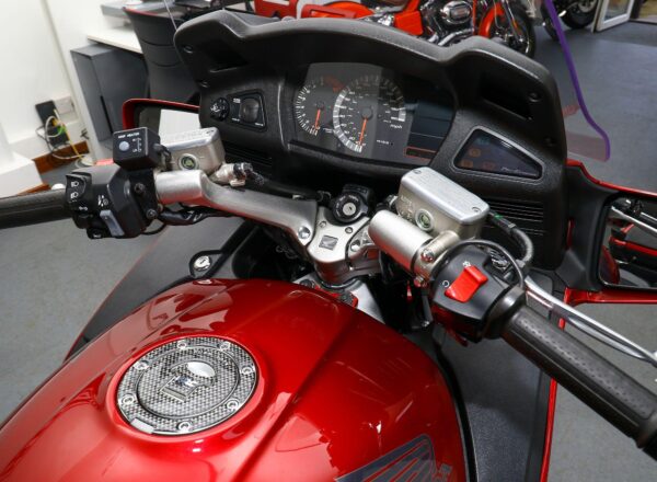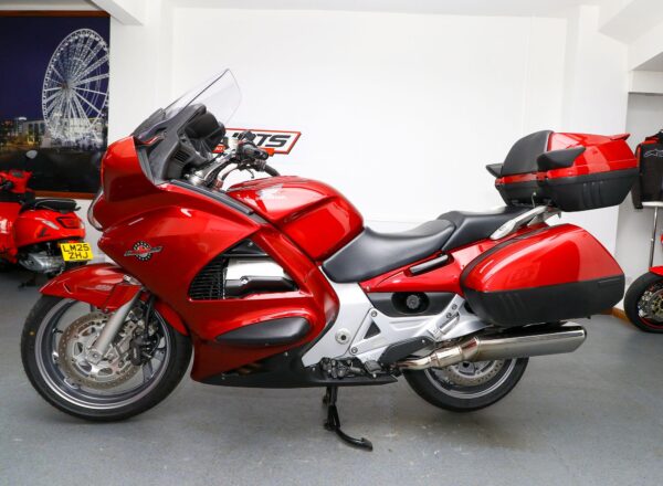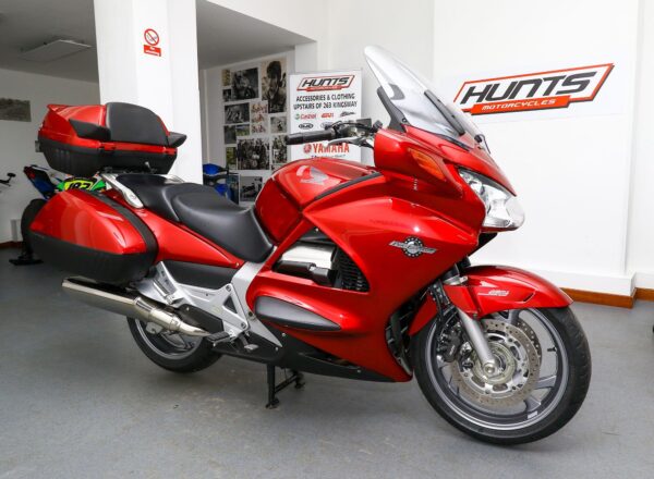 2015, ’65 reg. Honda ST1300 Pan European ABS. This stunning bike was originally supplied by us and has covered ONLY 3,660 MILES from new. Finished in Candy Red Metallic and complete with Honda integrated panniers and top box with inner bags plus top box spoiler with brake light and Honda heated grips. Beautifully looked after throughout and ready to tour. £9,695. PLUS : WE’LL DELIVER TO YOUR DOOR ANYWHERE IN MAINLAND UK FOR JUST £99! – Part-Ex and finance/PCP available, please ask for details. Call Hunts Motorcycles on 0161-432 1303. Please note: Some of our stock is stored off-site so please call us before setting off to view any of our pre-owned bikes.