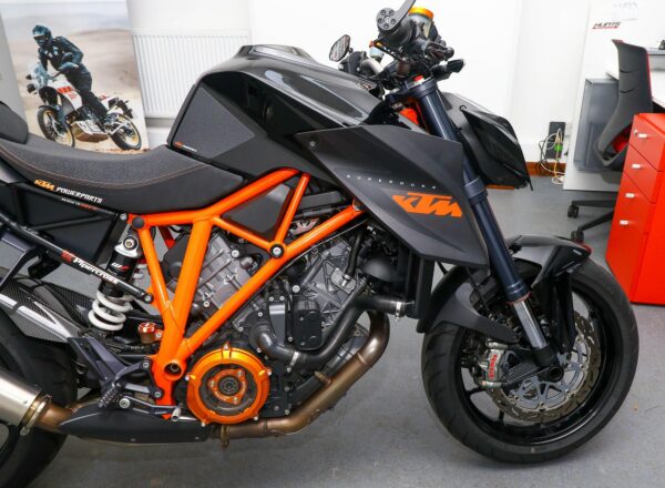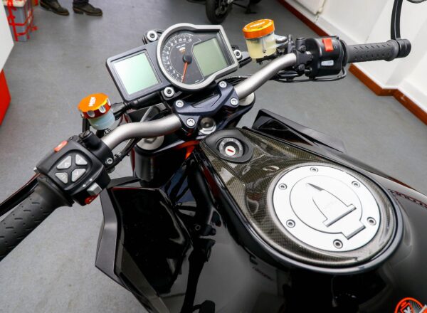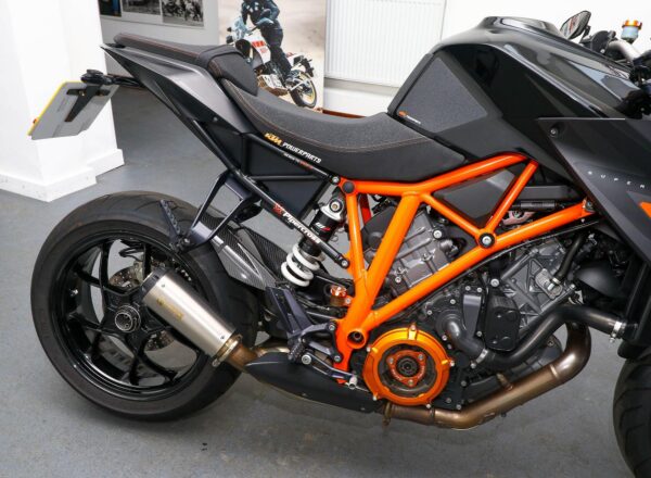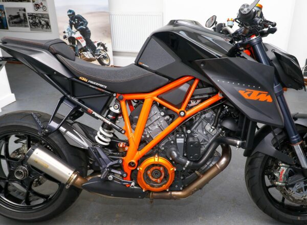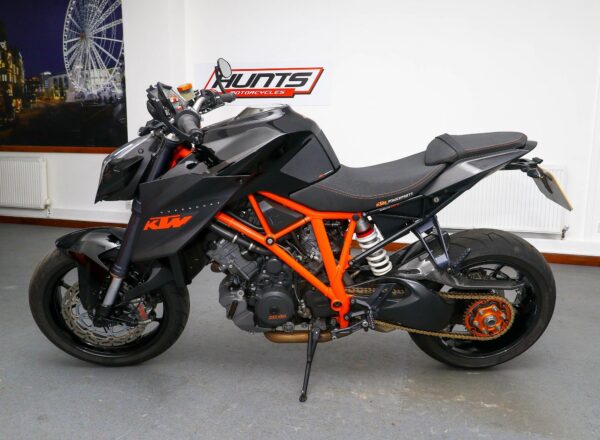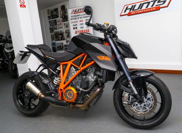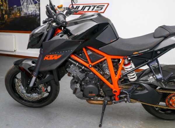 2015, ’15 reg. KTM 1290 Super Duke. Complete with radiator guard, carbon hugger guard, KTM Powerparts seat and tank grips, seat cowl, tail tidy (standard included), open clutch cover, anodised master cylinder caps, wavy discs and Scorpion exhaust can. Beautifully looked after throughout. Looks, sounds and rides great. £6,995. PLUS : WE’LL DELIVER TO YOUR DOOR ANYWHERE IN MAINLAND UK FOR JUST £99! – Part-Ex and finance/PCP available, please ask for details. Call Hunts Motorcycles on 0161-432 1303. Please note: Some of our stock is stored off-site so please call us before setting off to view any of our pre-owned bikes.