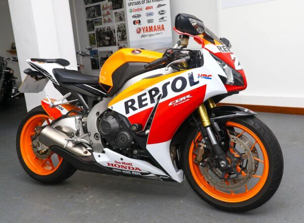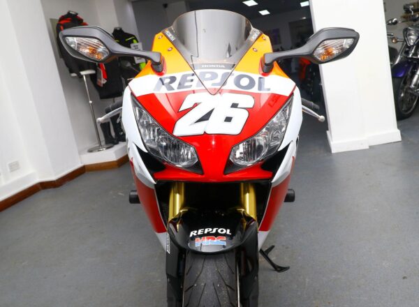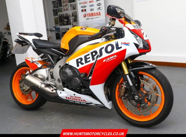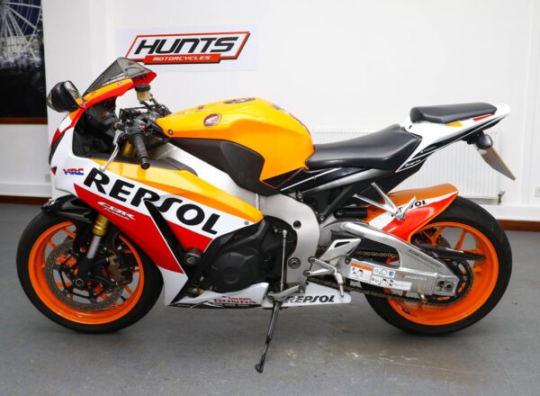 2016, ’66 reg. Honda CBR1000RR Fireblade Repsol ABS. One owner from new. A genuine Repsol Fireblade that is complete with tail tidy, hugger guard, R&G fairing protectors and two new tyres. Honda HISS and DataTag. Very well cared for and ready to ride. Superb value at just £5,295. PLUS : WE’LL DELIVER TO YOUR DOOR ANYWHERE IN MAINLAND UK FOR JUST £99! – Part-Ex and finance/PCP available, please ask for details. Call Hunts Motorcycles on 0161-432 1303. Please note: Some of our stock is stored off-site so please call us before setting off to view any of our pre-owned bikes.