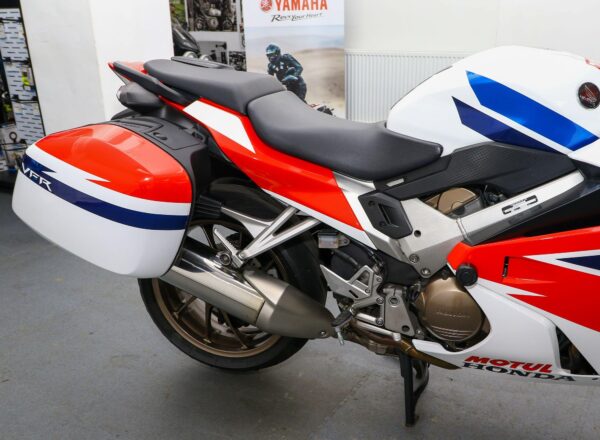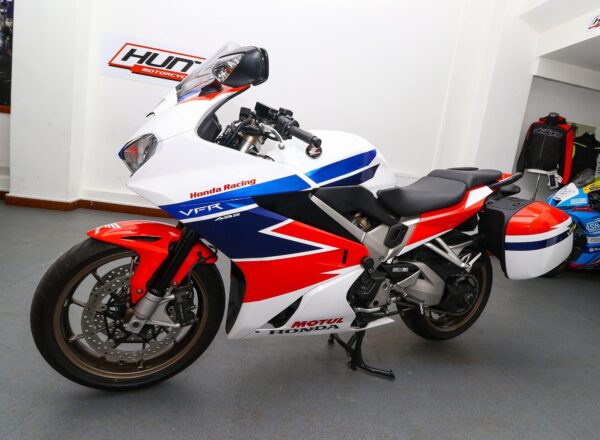 A very special bike! – 2016, 16 reg. Honda VFR800F ABS. Supplied by us from new with Honda TT Legends replica paintwork by PaintBox NI. Complete with Honda panniers, heated grips plus fairing protectors. DataTag. Looks and rides superb. Fantastic value at £6,795. PLUS : WE’LL DELIVER TO YOUR DOOR ANYWHERE IN MAINLAND UK FOR JUST £99! – Part-Ex and finance/PCP available, please ask for details. Call Hunts Motorcycles on 0161-432 1303. Please note: Some of our stock is stored off-site so please call us before setting off to view any of our pre-owned bikes.