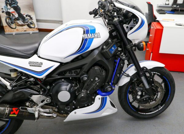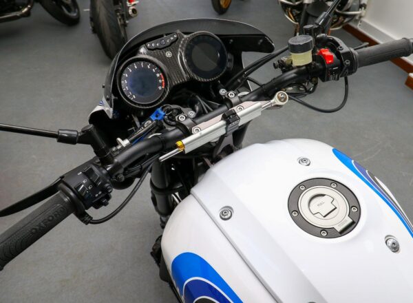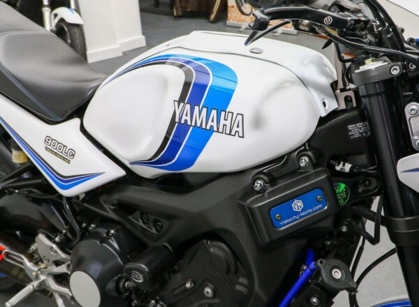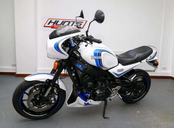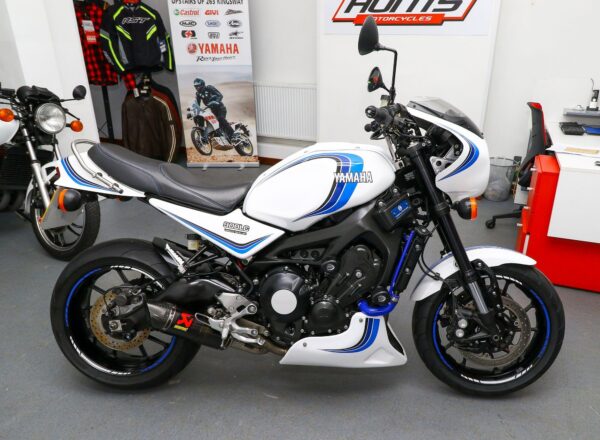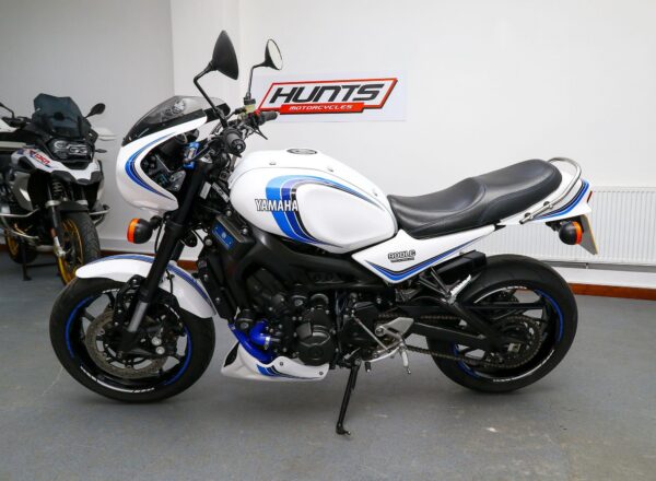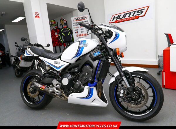 2016, ’16 reg. Yamaha XSR900 with Velocity-Moto ‘900LC’ kit. Finished with LC inspired graphics and complete with tail tidy, double R&G crash mushrooms, paddock stand bobbins, custom seat, passenger grab rail, Oxford heated grips, quickshifter, full Akrapovic exhaust system, K-Tech fork springs, blue hoses, carbon clock surround and Brembo front brake lever. Looks, sounds and rides superb. Great value at £7,395. PLUS : WE’LL DELIVER TO YOUR DOOR ANYWHERE IN MAINLAND UK FOR JUST £99! – Part-Ex and finance/PCP available, please ask for details. Call Hunts Motorcycles on 0161-432 1303. Please note: Some of our stock is stored off-site so please call us before setting off to view any of our pre-owned bikes.