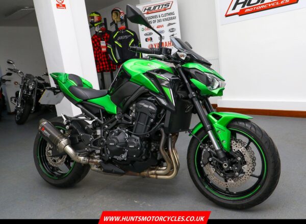 2017, ’67 reg. Kawasaki Z900 ABS. Complete with tinted flyscreen, seat cowl, comfort seat, engine case covers, radiator guard and Akrapovic pipe. Looks, sounds and rides superb. Fantastic value at just £5,795. PLUS : WE’LL DELIVER TO YOUR DOOR ANYWHERE IN MAINLAND UK FOR JUST £99! – Part-Ex and finance/PCP available, please ask for details. Call Hunts Motorcycles on 0161-432 1303. Please note: Some of our stock is stored off-site so please call us before setting off to view any of our pre-owned bikes.