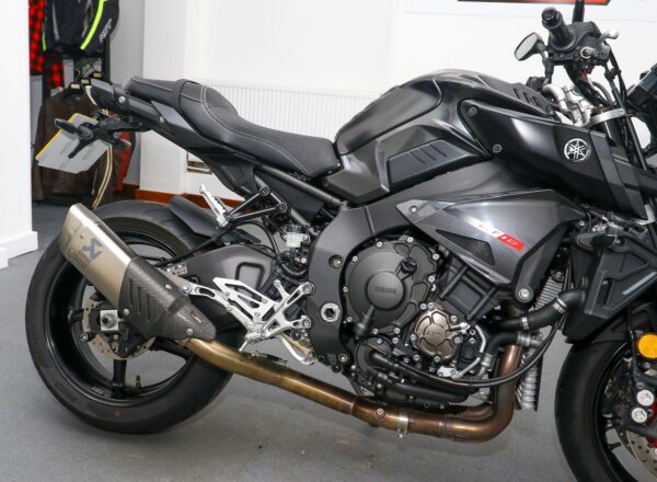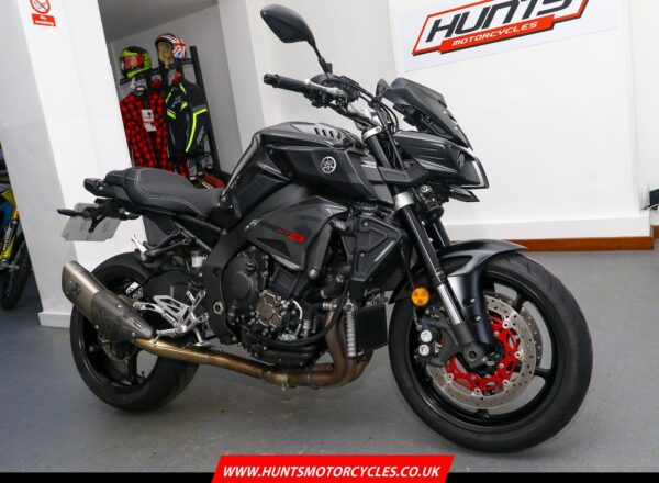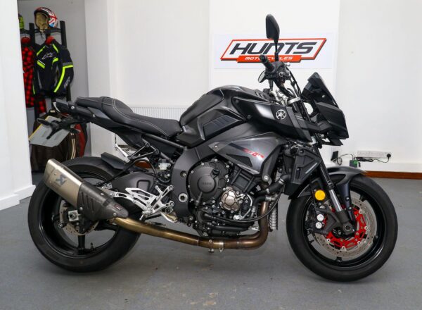 2017, ’17 reg. Yamaha MT-10. Just 8,377 miles from new and complete with tail tidy, radiator guard, comfort seat and Akrapovic exhaust (standard pipe included). Looks, sounds and rides superb. Very well cared for throughout and great value at £7,995. PLUS : WE’LL DELIVER TO YOUR DOOR ANYWHERE IN MAINLAND UK FOR JUST £99! – Part-Ex and finance/PCP available, please ask for details. Call Hunts Motorcycles on 0161-432 1303. Please note: Some of our stock is stored off-site so please call us before setting off to view any of our pre-owned bikes.