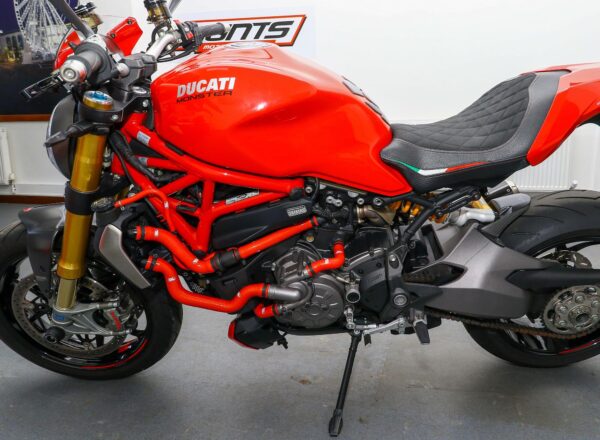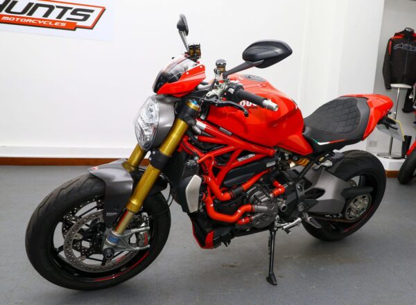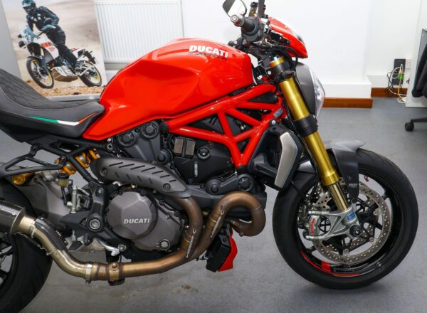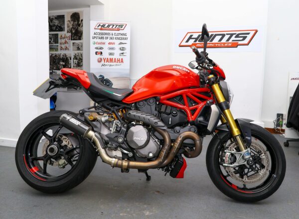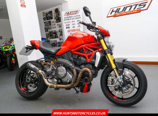 2018, ’18 reg. Ducati Monster 1200S. ONLY 4,725 MILES from new. Complete with Ducati Safety Pack, Öhlins suspension, Brembo brakes, seat cowl, tail tidy, colour matched hoses, flyscreen, spindle bobbins, Ducati Performance indicators, rim tapes and MIVV and standard silencers. Looks, sounds and rides superb. Great value at £9,995. PLUS : WE’LL DELIVER TO YOUR DOOR ANYWHERE IN MAINLAND UK FOR JUST £99! – Part-Ex and finance/PCP available, please ask for details. Call Hunts Motorcycles on 0161-432 1303. Please note: Some of our stock is stored off-site so please call us before setting off to view any of our pre-owned bikes.