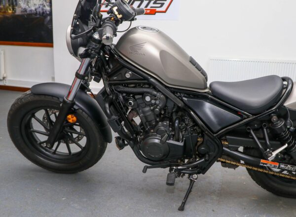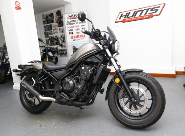 2018, ’18 reg. Honda CMX500 Rebel ABS. Complete with tinted flyscreen, panniers, luggage rack, Oxford heated grips, engine bars and Scorpion silencer. Standard silencer and pillion seat included, plus spare flat handlebars. Supplied and serviced by us from new. A2 licence legal and great value at £3,595. PLUS : WE’LL DELIVER TO YOUR DOOR ANYWHERE IN MAINLAND UK FOR JUST £99! – Part-Ex and finance/PCP available, please ask for details. Call Hunts Motorcycles on 0161-432 1303. Please note: Some of our stock is stored off-site so please call us before setting off to view any of our pre-owned bikes.