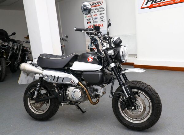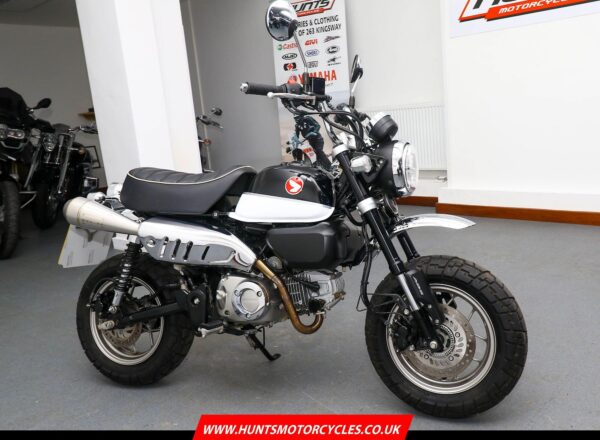 2018, ’68 reg. Honda Z125 Monkey ABS. ONLY 2,373 MILES from new. Complete with R&G tail tidy and Tyga Performance exhaust (standard pipe included). Looks, sounds and rides great. Learner licence legal. Super value at £2,895. PLUS : WE’LL DELIVER TO YOUR DOOR ANYWHERE IN MAINLAND UK FOR JUST £99! – Part-Ex and finance/PCP available, please ask for details. Call Hunts Motorcycles on 0161-432 1303. Please note: Some of our stock is stored off-site so please call us before setting off to view any of our pre-owned bikes.
