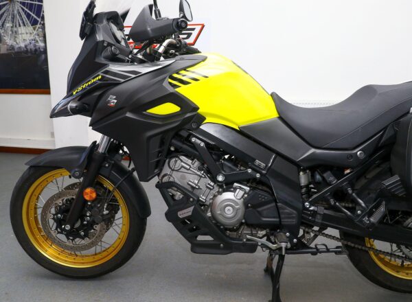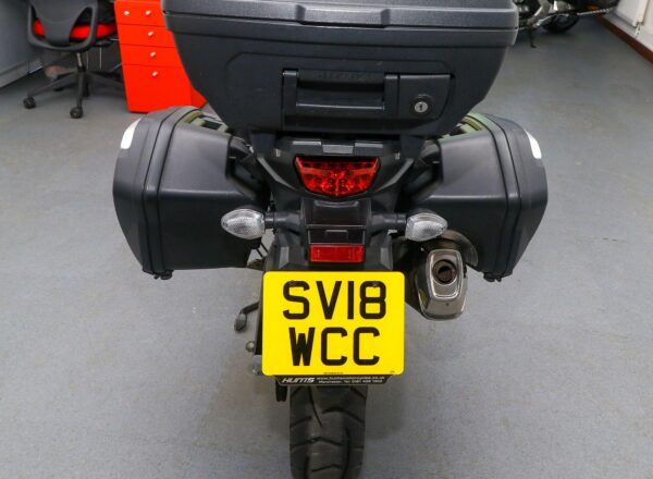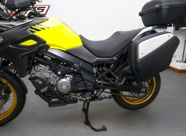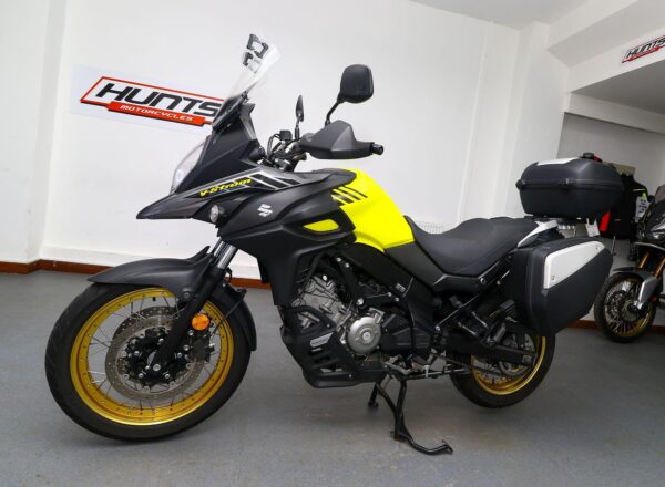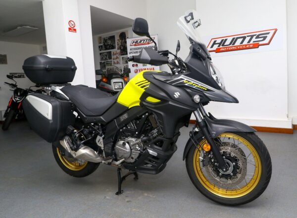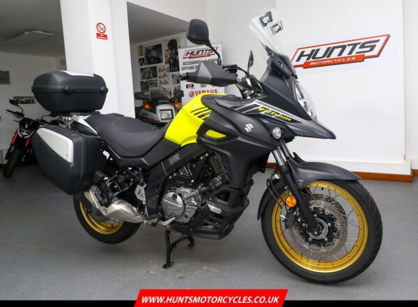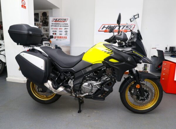 2018, ’18 reg. Suzuki DL650X V-Strom ABS. Complete with heated grips, Suzuki top box and panniers, touring windscreen and mainstand. Just had Suzuki main dealer service. A very well looked after example of Suzuki’s mid-size adventure bike that is ready to tour. Great value at £5,495. PLUS : WE’LL DELIVER TO YOUR DOOR ANYWHERE IN MAINLAND UK FOR JUST £99! – Part-Ex and finance/PCP available, please ask for details. Call Hunts Motorcycles on 0161-432 1303. Please note: Some of our stock is stored off-site so please call us before setting off to view any of our pre-owned bikes.