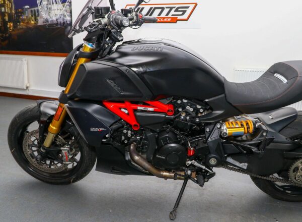 2019, ’19 reg. Ducati Diavel 1260S. Complete with with Öhlins suspension, Brembo brakes, Ducati Safety Pack, belly pan, Puig windscreen, passenger backrest, quickshifter, spindle bobbins, Ducati heated grips and HP Corse exhaust (sounds superb!). Ready to ride and great value at £12,395. PLUS : WE’LL DELIVER TO YOUR DOOR ANYWHERE IN MAINLAND UK FOR JUST £99! – Part-Ex and finance/PCP available, please ask for details. Call Hunts Motorcycles on 0161-432 1303. Please note: Some of our stock is stored off-site so please call us before setting off to view any of our pre-owned bikes.