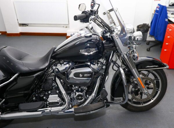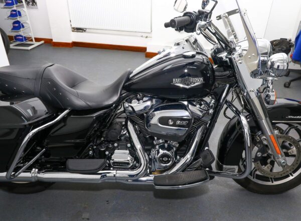 2019, ’19 reg. Harley-Davidson Road King FLHR. Only 5,956 miles from new. Powered by the Milwaukee-Eight 107ci V-twin engine coupled to a 6-speed gearbox and complete with integrated panniers, footboards, engine bars, touring windscreen, spot lights, cruise control and much more. Beautifully looked after and superb value at £15,795. PLUS : WE’LL DELIVER TO YOUR DOOR ANYWHERE IN MAINLAND UK FOR JUST £99! – Part-Ex and finance/PCP available, please ask for details. Call Hunts Motorcycles on 0161-432 1303. Please note: Some of our stock is stored off-site so please call us before setting off to view any of our pre-owned bikes.