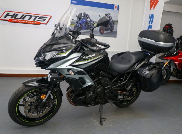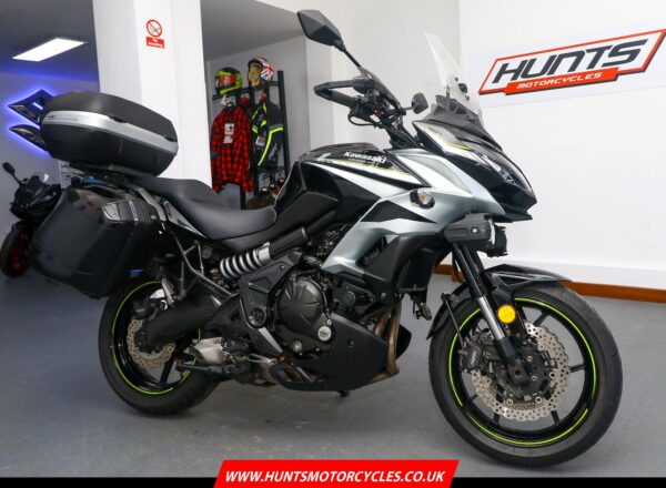 2019, 19 reg. Kawasaki Versys 650 ABS. Complete with hugger guard, spot lights, adjustable levers, Oxford heated grips, frame protectors, hand guards, rim tapes, Kawasaki panniers and Givi top box. Ready to ride and great value at just £4,395. PLUS : WE’LL DELIVER TO YOUR DOOR ANYWHERE IN MAINLAND UK FOR JUST £99! – Part-Ex and finance/PCP available, please ask for details. Call Hunts Motorcycles on 0161-432 1303. Please note: Some of our stock is stored off-site so please call us before setting off to view any of our pre-owned bikes.