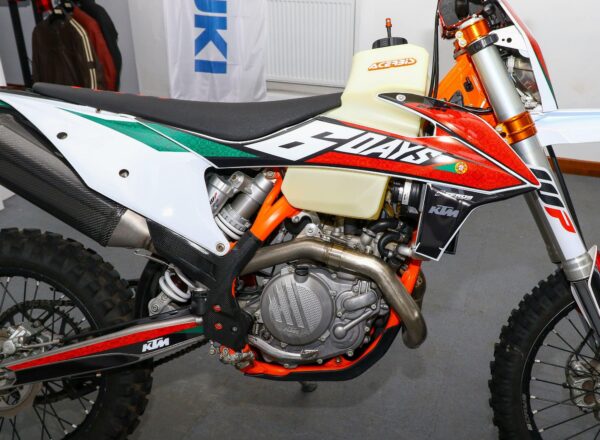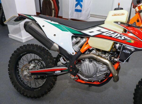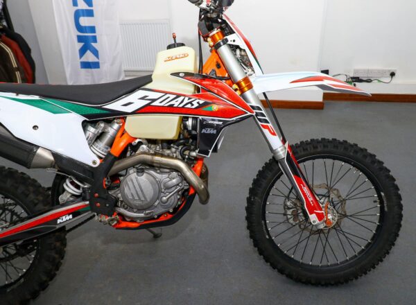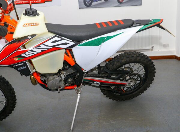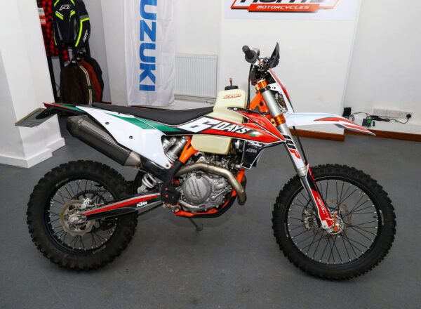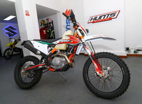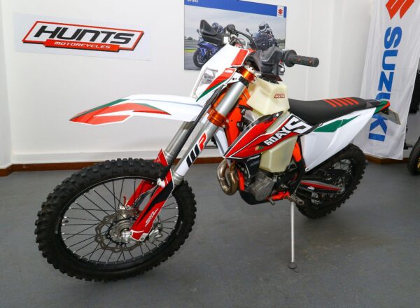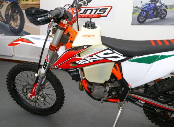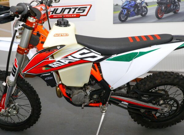 2019 ’69 reg. KTM EXC-F 450 Six Days Enduro. Complete with Acerbis high capacity fuel tank and carbon exhaust shield. Great fun to ride. Ready to compete or the perfect green laner. Superb value at £6,695. PLUS : WE’LL DELIVER TO YOUR DOOR ANYWHERE IN MAINLAND UK FOR JUST £99! – Part-Ex and finance/PCP available, please ask for details. Call Hunts Motorcycles on 0161-432 1303. Please note: Some of our stock is stored off-site so please call us before setting off to view any of our pre-owned bikes.