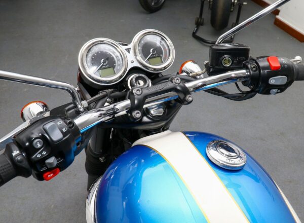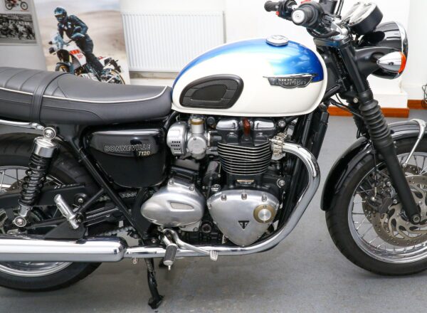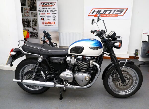 2019, ’19 reg. Triumph Bonneville T120. ONLY 7,105 MILES from new. Complete with Triumph heated grips and passenger grab rail. Windscreen and charger also included. DataTag. Beautifully looked after and ready to ride. £8,395. PLUS : WE’LL DELIVER TO YOUR DOOR ANYWHERE IN MAINLAND UK FOR JUST £99! – Part-Ex and finance/PCP available, please ask for details. Call Hunts Motorcycles on 0161-432 1303. Please note: Some of our stock is stored off-site so please call us before setting off to view any of our pre-owned bikes.