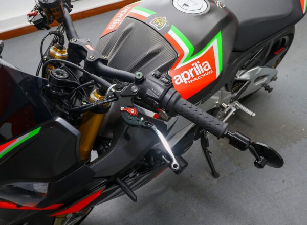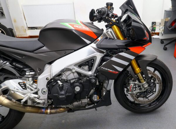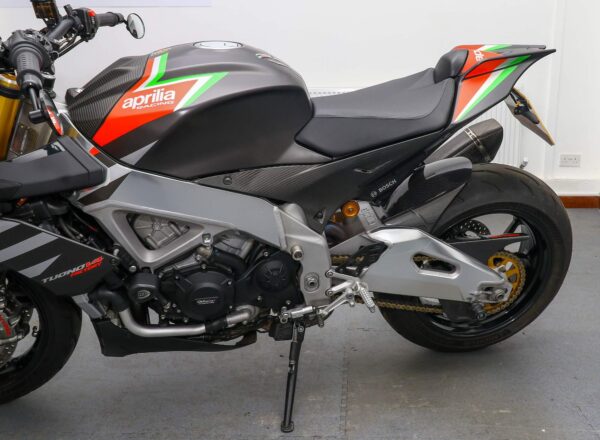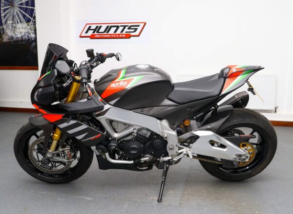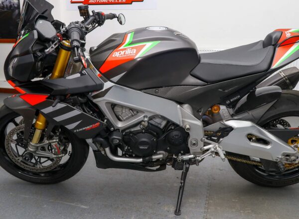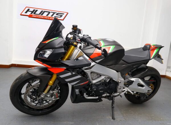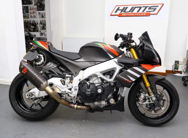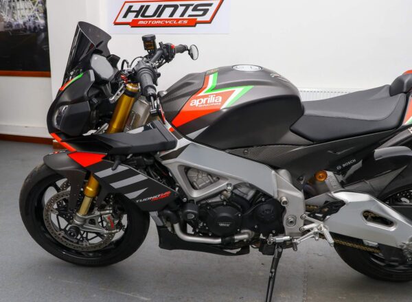 2020, ’20 reg. Aprilia Tuono V4 1100 Factory ABS. Complete with tail tidy, adjustable levers, LED indicators, GB Racing engine case covers, bar risers, R&G crash mushrooms and front spindle bobbins, carbon hugger, Rizoma bar end mirrors, Powerbronze windscreen plus Akrapovic exhaust and carbon exhaust hanger. Great fun to ride and superb value at £11,495. PLUS : WE’LL DELIVER TO YOUR DOOR ANYWHERE IN MAINLAND UK FOR JUST £99! – Part-Ex and finance/PCP available, please ask for details. Call Hunts Motorcycles on 0161-432 1303. Please note: Some of our stock is stored off-site so please call us before setting off to view any of our pre-owned bikes.