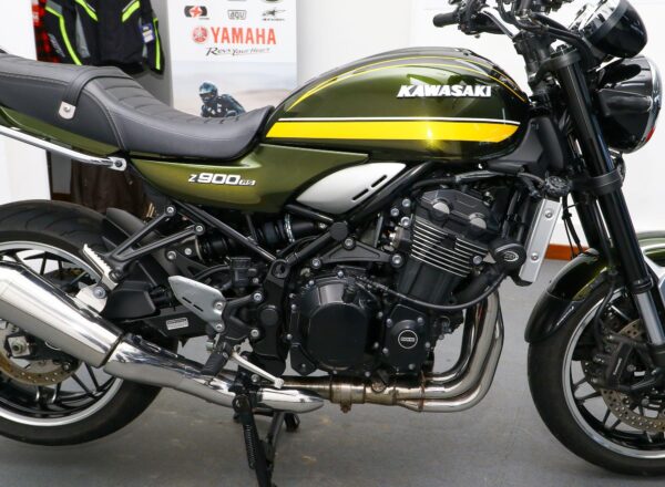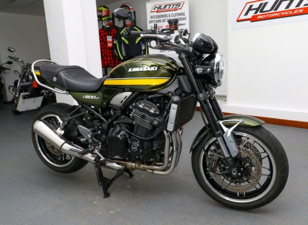 2020, ’70 reg. Kawasaki Z900RS. This stunning bike is complete with mainstand, Kawasaki heated grips, passenger grab rail, bar end mirrors, R&G frame protectors and extender fender. DataTag. Superb value at £7,595. PLUS : WE’LL DELIVER TO YOUR DOOR ANYWHERE IN MAINLAND UK FOR JUST £99! – Part-Ex and finance/PCP available, please ask for details. Call Hunts Motorcycles on 0161-432 1303. Please note: Some of our stock is stored off-site so please call us before setting off to view any of our pre-owned bikes.