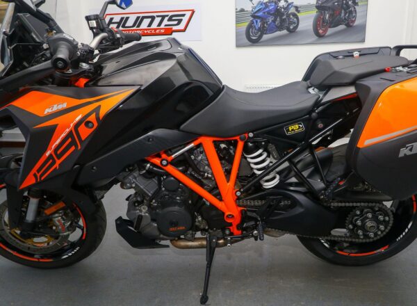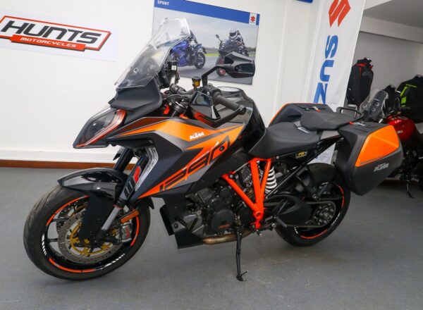 2020, ’70 reg. KTM 1290 Super Duke GT. Complete with quickshifter, heated grips, KTM panniers and Austin Racing exhaust (standard pipe included). Looks, sounds and rides superb. Great value at £9,495. PLUS : WE’LL DELIVER TO YOUR DOOR ANYWHERE IN MAINLAND UK FOR JUST £99! – Part-Ex and finance/PCP available, please ask for details. Call Hunts Motorcycles on 0161-432 1303. Please note: Some of our stock is stored off-site so please call us before setting off to view any of our pre-owned bikes.