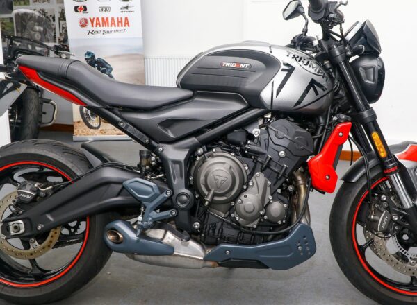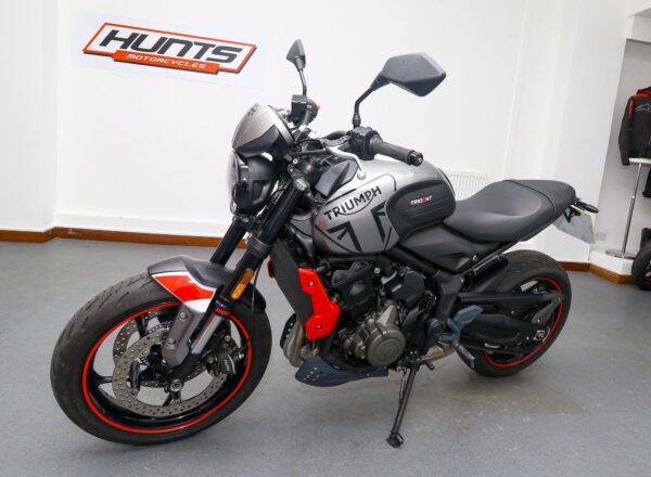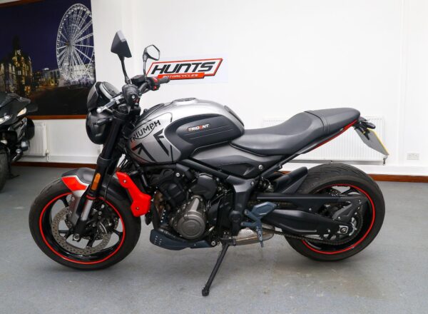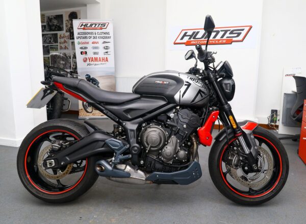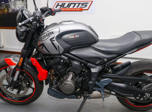 2021, ’21 reg. Triumph Trident 660. Complete with heated grips, tail tidy, flyscreen and rim tapes, otherwise a standard bike throughout. Great fun to ride and very economical to own and run. Superb value at £5,195. PLUS : WE’LL DELIVER TO YOUR DOOR ANYWHERE IN MAINLAND UK FOR JUST £99! – Part-Ex and finance/PCP available, please ask for details. Call Hunts Motorcycles on 0161-432 1303. Please note: Some of our stock is stored off-site so please call us before setting off to view any of our pre-owned bikes.