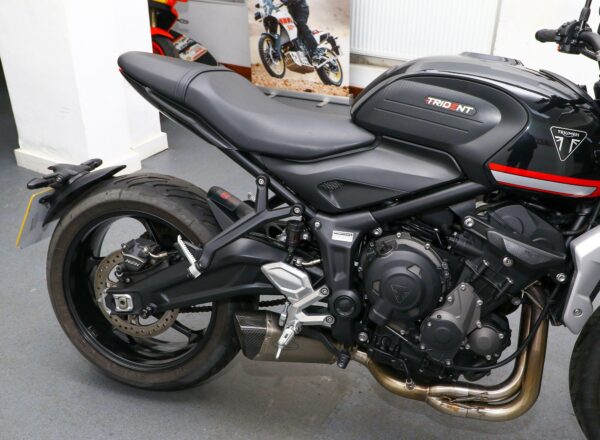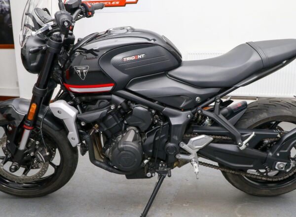2021, ’71 reg. Triumph Trident 660. Complete with windscreen, fork bobbins, engine protectors and Tec race silencer. DataTag. Looks, sounds and rides great. Superb value at £5,495. PLUS : WE’LL DELIVER TO YOUR DOOR ANYWHERE IN MAINLAND UK FOR JUST £99! – Part-Ex and finance/PCP available, please ask for details. Call Hunts Motorcycles on 0161-432 1303. Please note: Some of our stock is stored off-site so please call us before setting off to view any of our pre-owned bikes.