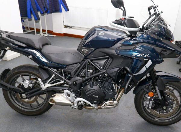 March 2022, ’22 reg. Benelli TRK 502 ABS. One owner and JUST 2,542 MILES from new. Complete with engine bars, handguards and accessory socket. Includes balance of manufacturers warranty. A lovely example of Benelli’s A2 licence friendly adventure bike that is great value at just £3,995. PLUS : WE’LL DELIVER TO YOUR DOOR ANYWHERE IN MAINLAND UK FOR JUST £99! – Part-Ex and finance/PCP available, please ask for details. Call Hunts Motorcycles on 0161-432 1303. Please note: Some of our stock is stored off-site so please call us before setting off to view any of our pre-owned bikes.