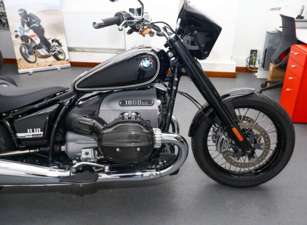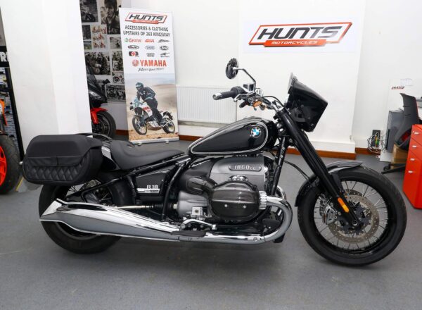 2022, ’71 reg. BMW R18 First Edition ABS. ONLY 5,352 MILES from new. Finished in Black Storm Metallic and complete with adaptive headlights, daytime running lights, hill start control, BMW Design Option chrome kit, running boards, heated grips, reverse gear, Puig nosecone/flyscreen, BMW Bobber Kit, carbon cylinder head/carb covers plus SW Motech panniers and mudguard mounted luggage rack. This bike looks, sounds and rides superb. Fantastic value at £10,295. PLUS : WE’LL DELIVER TO YOUR DOOR ANYWHERE IN MAINLAND UK FOR JUST £99! – Part-Ex and finance/PCP available, please ask for details. Call Hunts Motorcycles on 0161-432 1303. Please note: Some of our stock is stored off-site so please call us before setting off to view any of our pre-owned bikes.