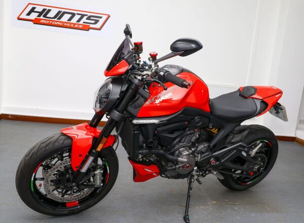 2022, ’22 reg. Ducati Monster 937 Plus+. ONLY 2,540 MILES from new. Complete with seat cowl, flyscreen, belly pan, tail tidy, carbon hugger, quickshifter, heated grips, ASV levers, spindle bobbins, anodised master cylinder, oil and radiator caps, rim tapes and Termignoni exhaust. Looks, sounds and rides superb. Great value at £8,995. PLUS : WE’LL DELIVER TO YOUR DOOR ANYWHERE IN MAINLAND UK FOR JUST £99! – Part-Ex and finance/PCP available, please ask for details. Call Hunts Motorcycles on 0161-432 1303. Please note: Some of our stock is stored off-site so please call us before setting off to view any of our pre-owned bikes.