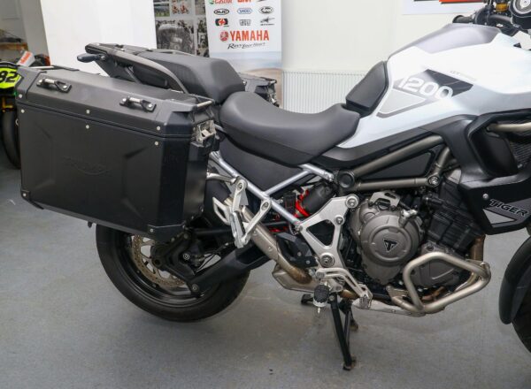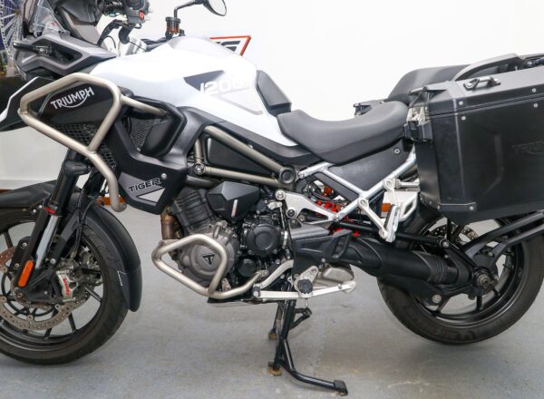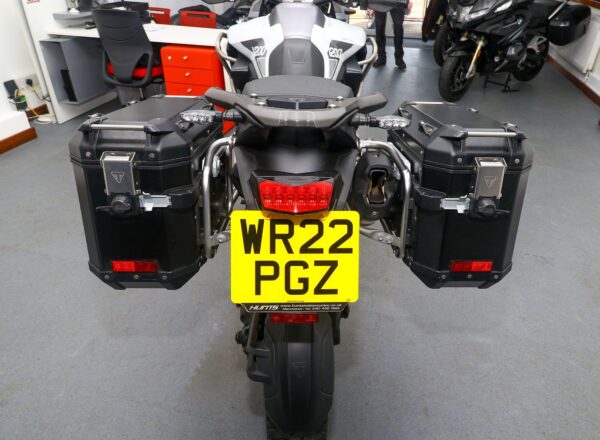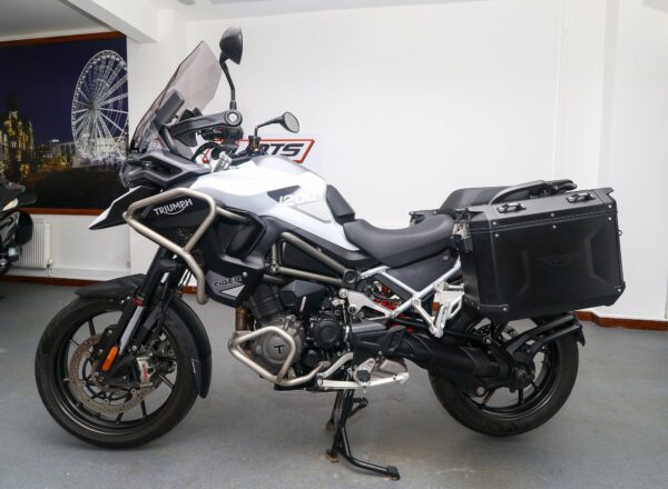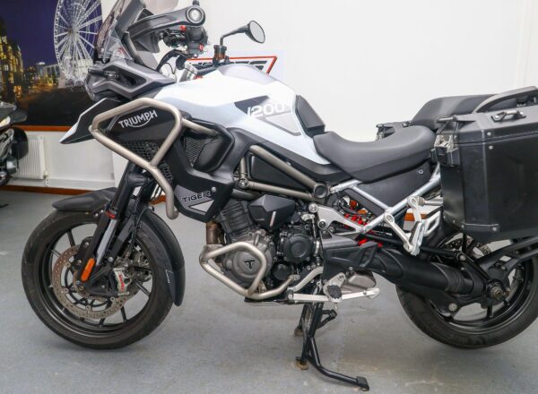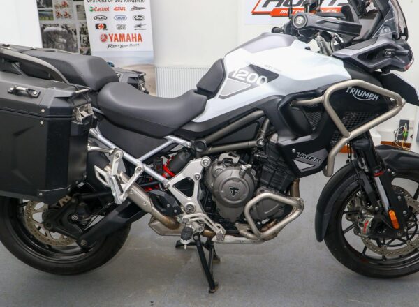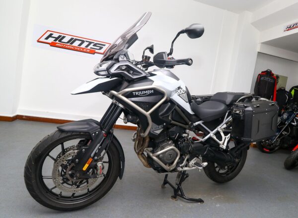 2022, ’22 reg. Triumph Tiger 1200GT Pro. Complete with upper and lower engine bars, Triumph heated grips and seat, Triumph panniers, fender extender and Puig windscreen. Triumph dealer service history. Ready to tour and great value at £11,495. PLUS : WE’LL DELIVER TO YOUR DOOR ANYWHERE IN MAINLAND UK FOR JUST £99! – Part-Ex and finance/PCP available, please ask for details. Call Hunts Motorcycles on 0161-432 1303. Please note: Some of our stock is stored off-site so please call us before setting off to view any of our pre-owned bikes.