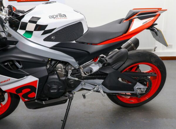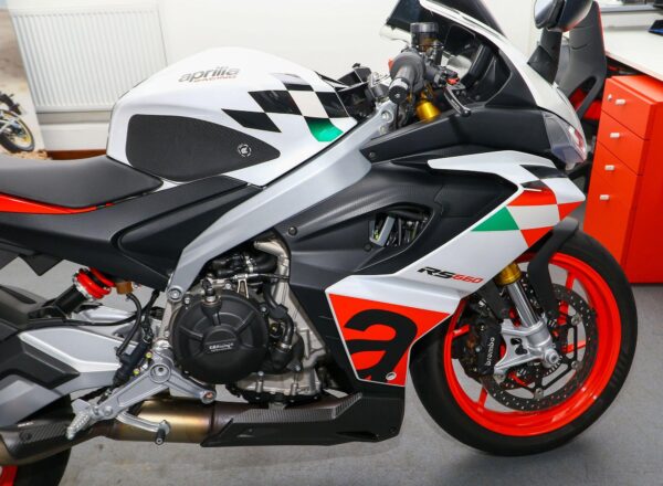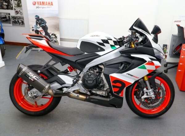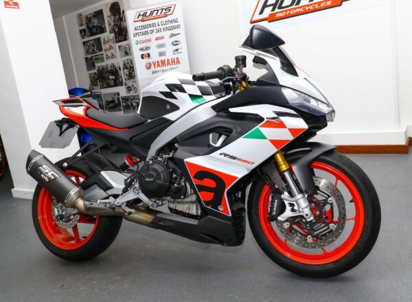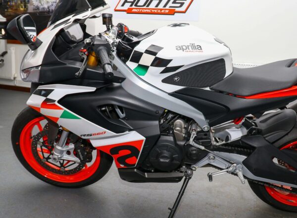 September 2023, ’73 Aprilia RS660 Extrema. ONLY 2,068 MILES from new. Complete with carbon guard, belly pan and infill panels, Evotech tail tidy, Evotech adjustable levers, GB Racing engine protection, tinted high level Puig windscreen, tank grips plus SC Project exhaust. Looks, sounds and rides superb. Great value at £8,495. PLUS : WE’LL DELIVER TO YOUR DOOR ANYWHERE IN MAINLAND UK FOR JUST £99! – Part-Ex and finance/PCP available, please ask for details. Call Hunts Motorcycles on 0161-432 1303. Please note: Some of our stock is stored off-site so please call us before setting off to view any of our pre-owned bikes.