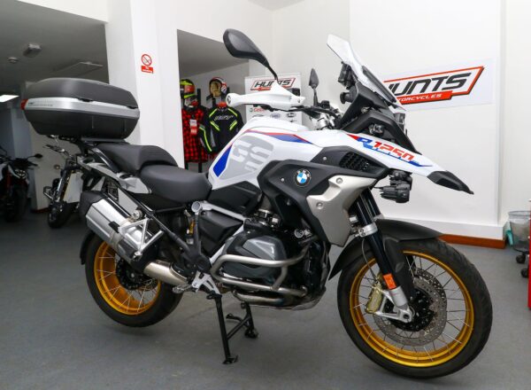 2023, ’23 reg. BMW R1250GS TE Rallye. One owner and just 9,327 miles from new. Complete with Touring, Comfort and Dynamic packages, ESA, keyless ignition, adaptive headlights, gearshift assistant, riding modes, heated grips, RDC, cruise control, hand guards, cruising lights, BMW Teleservices, spoked wheels, engine bars, spot lights and Givi top box. Ready to tour and superb value at £12,995. PLUS : WE’LL DELIVER TO YOUR DOOR ANYWHERE IN MAINLAND UK FOR JUST £99! – Part-Ex and finance/PCP available, please ask for details. Call Hunts Motorcycles on 0161-432 1303. Please note: Some of our stock is stored off-site so please call us before setting off to view any of our pre-owned bikes.