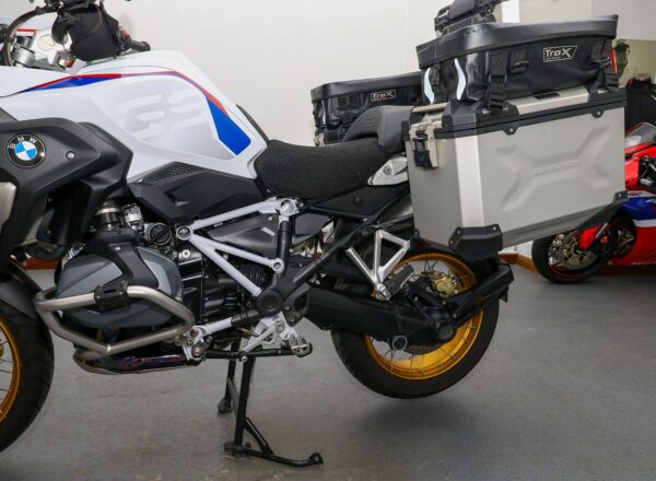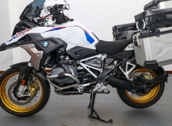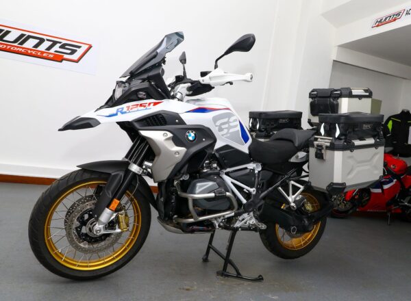 2023, ’23 reg. BMW R1250GS Rallye TE. One owner from new. Complete with Comfort, Touring and Dynamic packages, adaptive headlights, ESA, keyless ignition, daytime running lights, deluxe headlight, Gearshift Assist Pro, riding modes, sat nav preparation, heated grips, RDC, cruise control, handguards, cruising light, engine bars, BMW Intelligent Emergency call and Teleservices, spoked wheels, SW-Motech panniers and top box, tall windscreen, Touratech handlebar bag and Trax pannier expansion bags. Balance of BMW 3-year warranty. A stunning bike throughout that is great value at £15,495. PLUS : WE’LL DELIVER TO YOUR DOOR ANYWHERE IN MAINLAND UK FOR JUST £99! – Part-Ex and finance/PCP available, please ask for details. Call Hunts Motorcycles on 0161-432 1303. Please note: Some of our stock is stored off-site so please call us before setting off to view any of our pre-owned bikes.