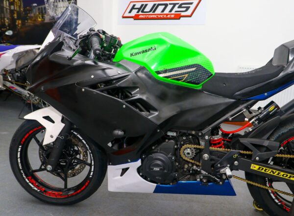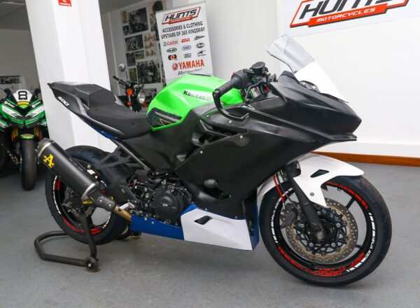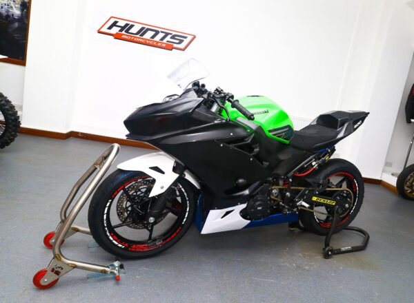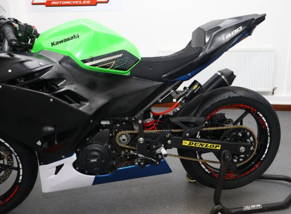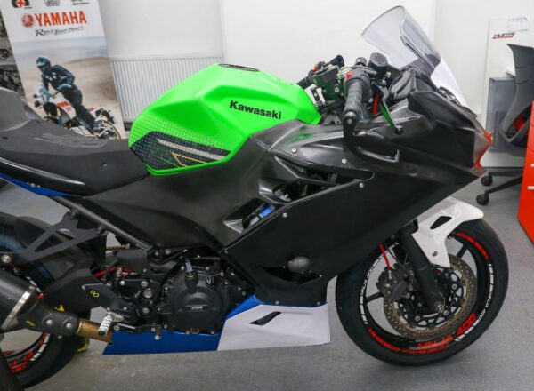 2023 Kawasaki Ninja 400 race bike. One owner and just 1,906 miles from new. Built by MSS to full Bemsee race spec. Used twice only in 2023 and then throughout 2024 Bemsee Championship season with multiple wins and podiums and finishing 4th in the Championship. Unused this year. Complete with V4 GPR steering damper, full K-TEC race suspension, HM quick shifter, 415 chain set up, front Brembo disc and latest style Arrow exhaust. Includes complete set of wheels with wets, various spares and spare bodywork. Meticulously maintained throughout and ready to race. £7,995.