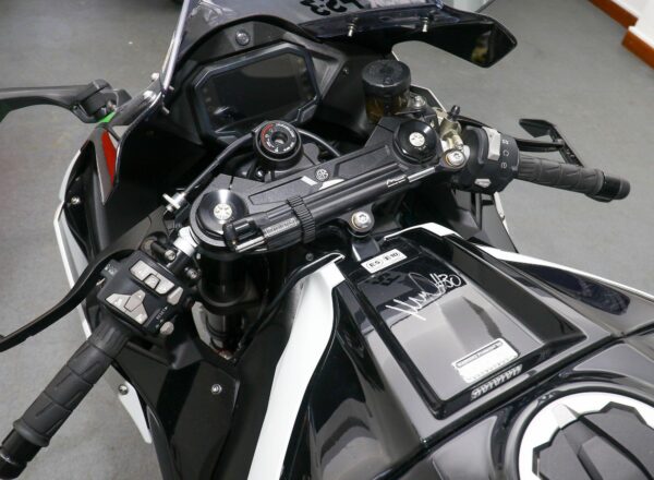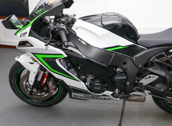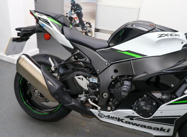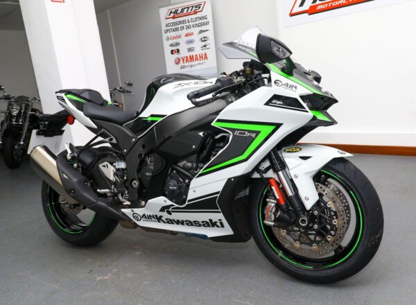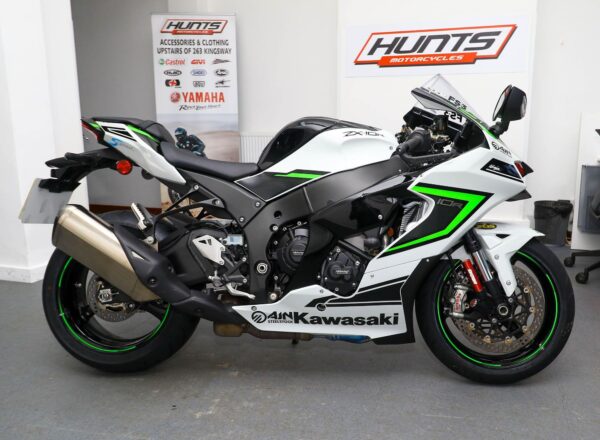 (THIS BIKE IS VAT QUALYFYING) March 2023, ’23 reg. Kawasaki ZX10-R. One owner and JUST 223 MILES from new. Complete with GB Racing engine case covers, frame protectors, front brake lever guard, plus Öhlins and standard steering dampers. DataTag. New tyres just fitted. Previously owned by BSB team FS-3 Racing and used solely as a pillion experience bike. Signed by team rider Max Cook and in superb order throughout. Not to be missed at just £12,495 (VAT inclusive). PLUS : WE’LL DELIVER TO YOUR DOOR ANYWHERE IN MAINLAND UK FOR JUST £99! – Part-Ex and finance/PCP available, please ask for details. Call Hunts Motorcycles on 0161-432 1303. Please note: Some of our stock is stored off-site so please call us before setting off to view any of our pre-owned bikes.