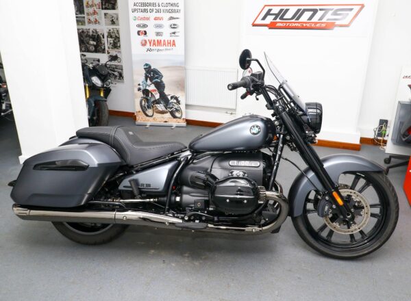 2024, ’24 reg. BMW R18 Roctane. ONLY 3,824 MILES from new. Finished in stunning Mineral Grey metallic matt and complete with touring windscreen, adaptive headlight, daytime running lights, hill start control, heated grips, RDC and reverser. Beautifully looked after and ready to cruise. £11,995. PLUS : WE’LL DELIVER TO YOUR DOOR ANYWHERE IN MAINLAND UK FOR JUST £99! – Part-Ex and finance/PCP available, please ask for details. Call Hunts Motorcycles on 0161-432 1303. Please note: Some of our stock is stored off-site so please call us before setting off to view any of our pre-owned bikes.