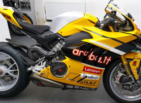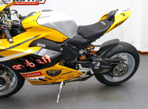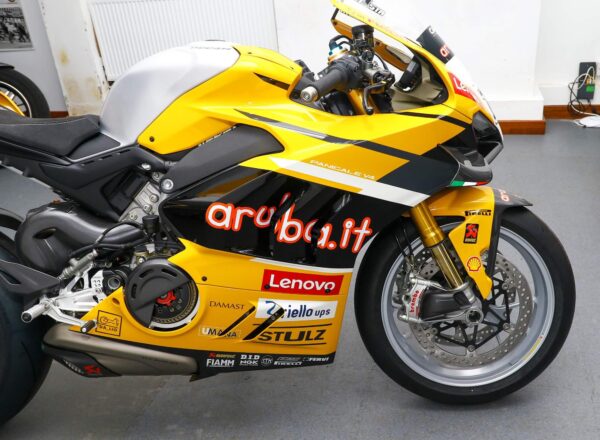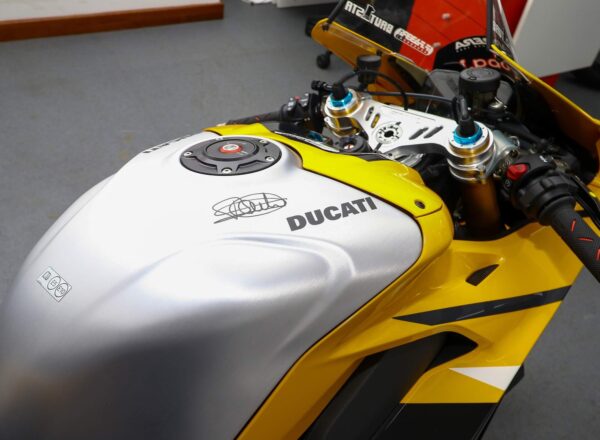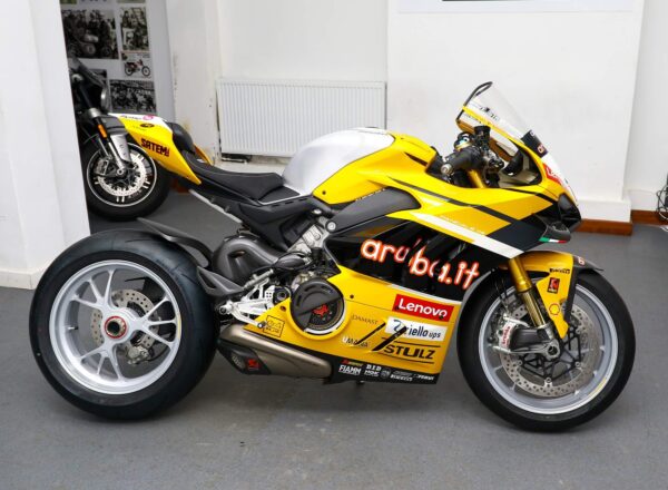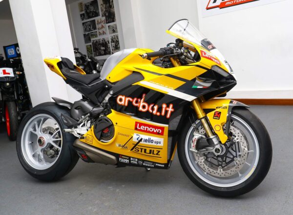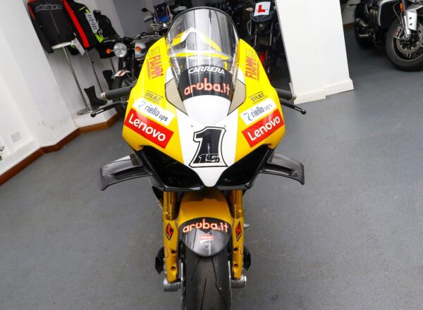 (THIS BIKE IS VAT QUALIFYING) July 2024, ’24 reg. (ZERO MILES) Ducati Corse Special Series collectors’ limited edition Panigale V4 Bautista 2023 World Champion Replica. (Number 137 of 219). Liveried in the exclusive Ducati Giallo seen at the Misano round and at Jerez, where Álvaro Bautista became WorldSBK champion for the second time. Complete with Bautista’s signature on the tank and certificate of authenticity, the bike comes complete with custom cover. A stunning machine which will be the highlight of any Ducati collection. £64,995 (VAT inclusive). Further information on application. Please contact John Brown on 0161-432 1303