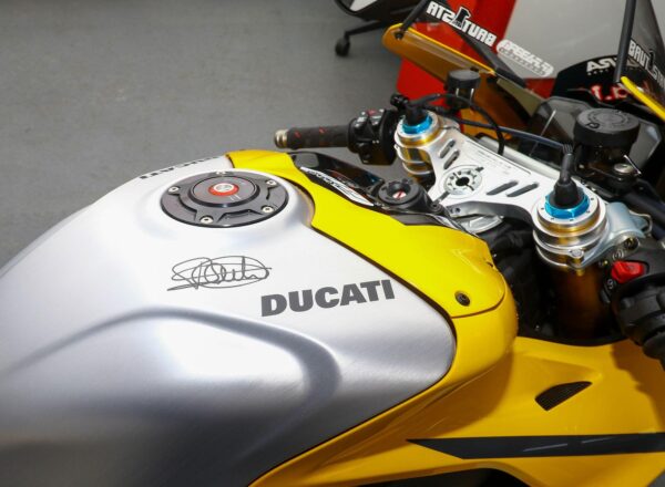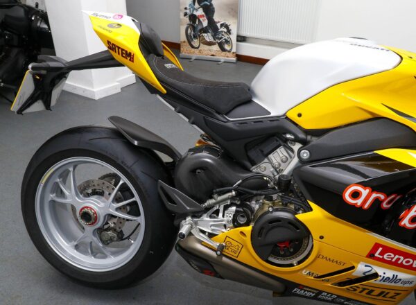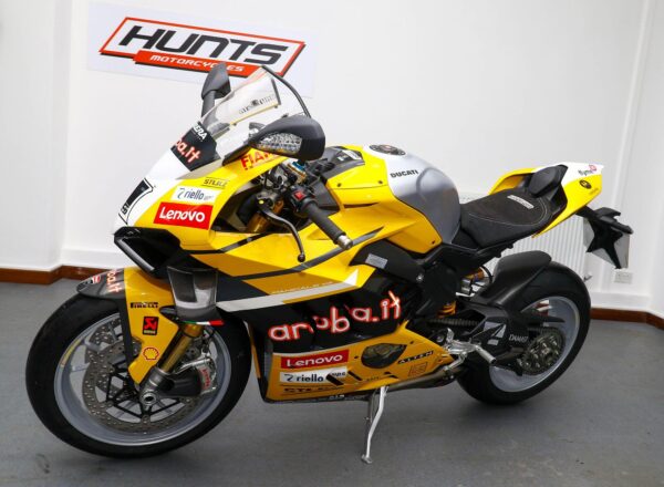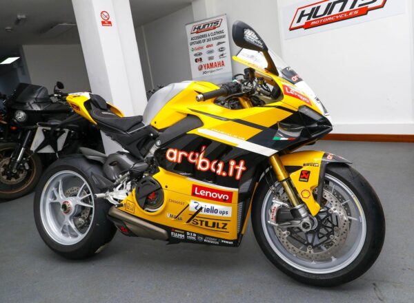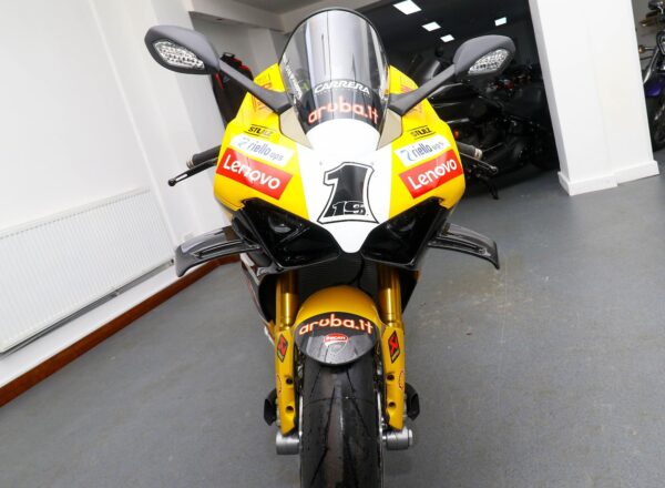 (THIS BIKE IS VAT QUALIFYING) July 2024, ’24 reg. (ZERO MILES) Ducati Corse Special Series collectors’ limited edition Panigale V4 Bautista 2023 World Champion Replica. (Number 137 of 219). Liveried in the exclusive Ducati Giallo seen at the Misano round and at Jerez, where Álvaro Bautista became WorldSBK champion for the second time. Complete with Bautista’s signature on the tank and certificate of authenticity, the bike comes complete with custom cover. A stunning machine which will be the highlight of any Ducati collection. £49,995 (VAT inclusive). Further information on application. Please contact John Brown on 0161-432 1303