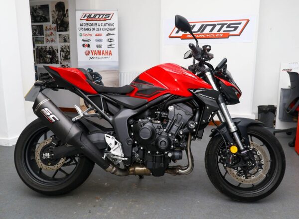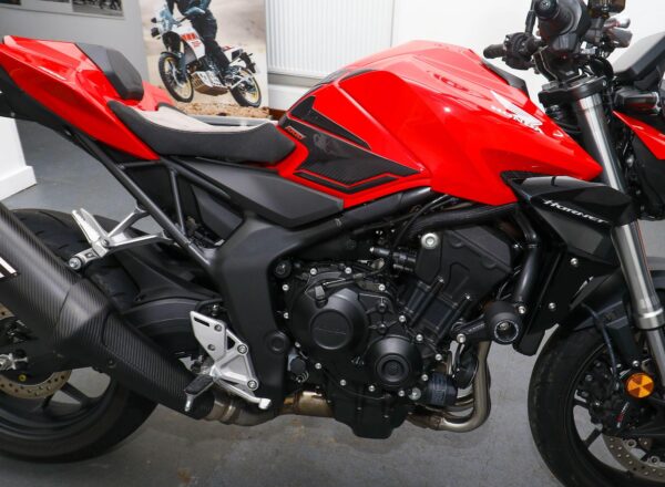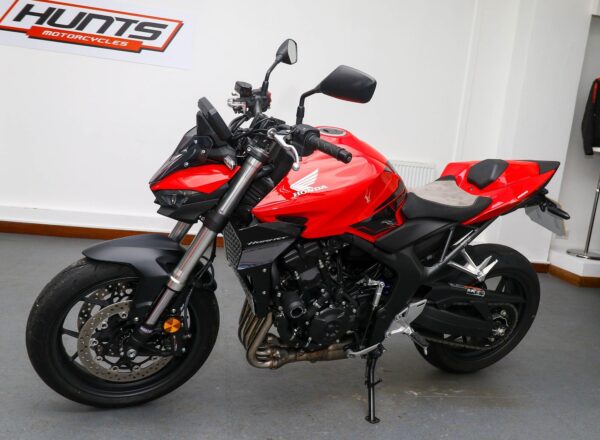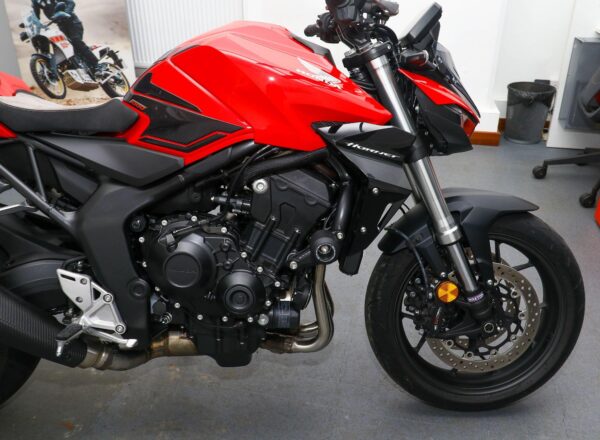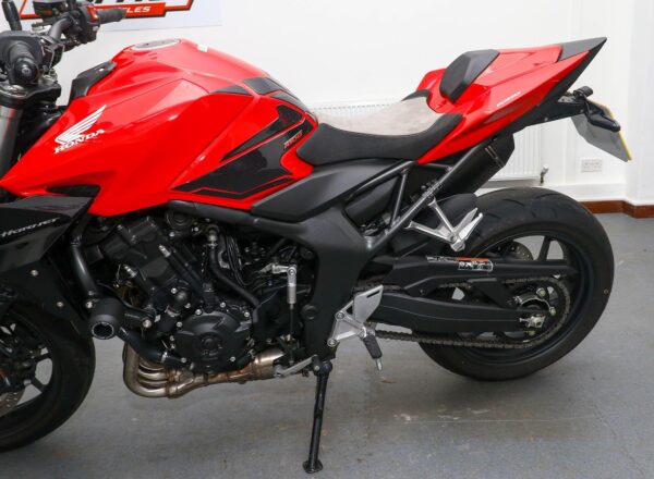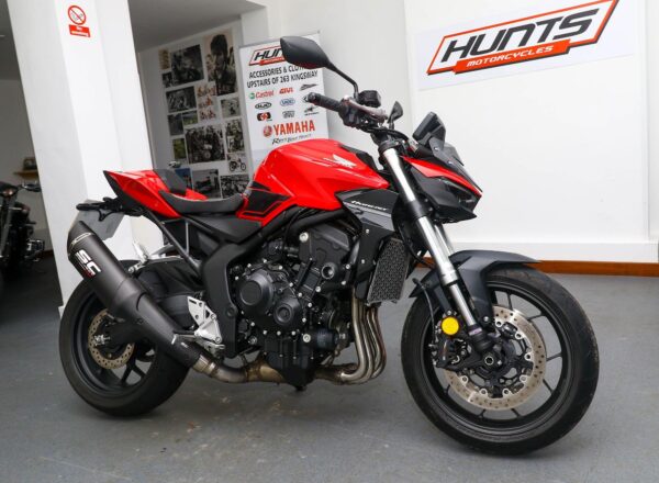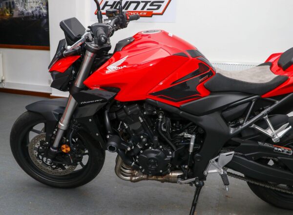 2025, ’25 reg. Honda CB1000 Hornet ABS. One owner and JUST 910 MILES from new. Complete with radiator guard, seat cowl, quickshifter, tail tidy, tank pad, engine protectors, USB socket, Maxton rear shock and fork setup (cost £1.300), and SC Project exhaust (standard exhaust included). Balance of Honda warranty. Very much ‘as new’ throughout and superb value at £8,795. PLUS : WE’LL DELIVER TO YOUR DOOR ANYWHERE IN MAINLAND UK FOR JUST £99! – Part-Ex and finance/PCP available, please ask for details. Call Hunts Motorcycles on 0161-432 1303. Please note: Some of our stock is stored off-site so please call us before setting off to view any of our pre-owned bikes.