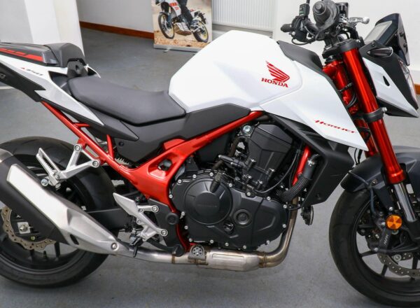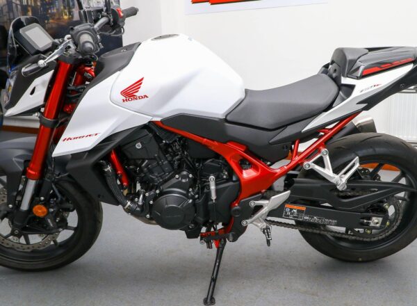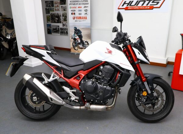 February 2025, ’74 reg. Honda CB750 Hornet. One owner and JUST 964 MILES from new. Fitted with Honda Sports Kit, quickshifter and Oxford heated grips. Very much ‘as new’ throughout and complete with balance of Honda warranty. Save on new price at £6,395. PLUS : WE’LL DELIVER TO YOUR DOOR ANYWHERE IN MAINLAND UK FOR JUST £99! – Part-Ex and finance/PCP available, please ask for details. Call Hunts Motorcycles on 0161-432 1303. Please note: Some of our stock is stored off-site so please call us before setting off to view any of our pre-owned bikes.