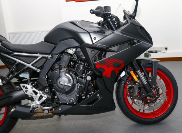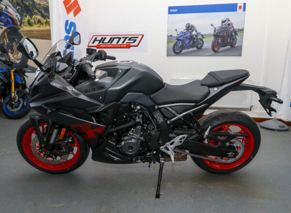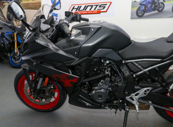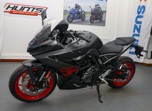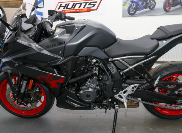 NEW Suzuki GSX-8R. Finished in Metallic Matt Black. Just £8,999 on the road including 36 months Suzuki warranty PLUS: FREE mainland UK delivery (Please note: NO ADDITIONAL SERVICE /ADMIN CHARGES. The price you see is the price you pay!). A new era for sportsbikes, where superbike looks combine with real-world performance and usability. A punchy engine packed with torque, housed in an agile, responsive chassis, with performance enhanced by a sophisticated suite of electronics for an unrivalled experience on the road or track. Part-Ex and finance/PCP available, please ask for details. Call Hunts Motorcycles on 0161-432 1303.