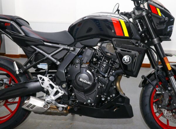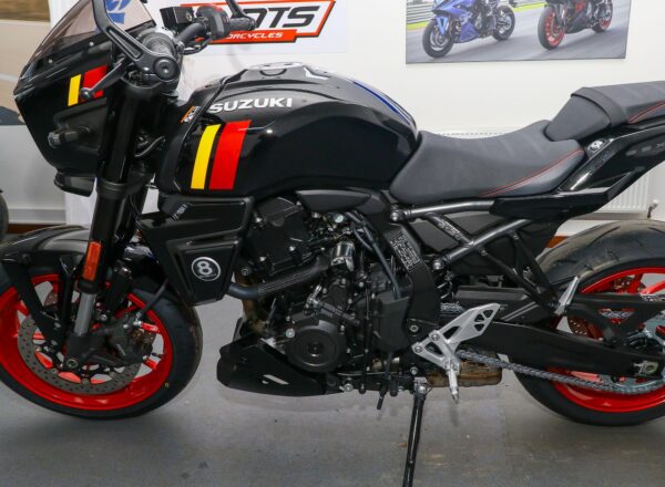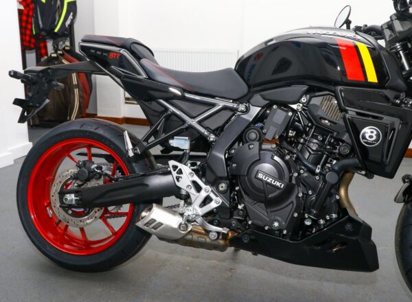 NEW Suzuki GSX-8TT – Finished in Glass Sparkle Black. Just £8,999 on the road including 36 months Suzuki warranty PLUS: FREE mainland UK delivery (Please note: NO ADDITIONAL SERVICE /ADMIN CHARGES. The price you see is the price you pay!). Influenced by road race machines of the 1970s and 1980s, the stunning new 8TT wraps its award-winning engine in period race bike-inspired bodywork, finished with sporty detailing from the seat to the decals on the fairing and tank. Part-Ex and finance/PCP available, please ask for details. Call Hunts Motorcycles on 0161-432 1303.