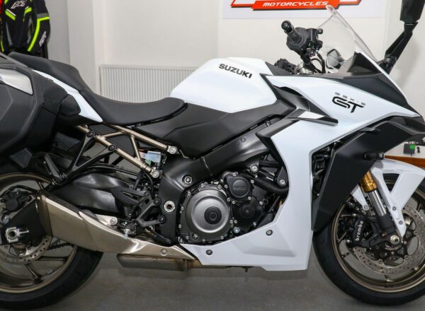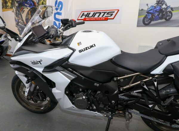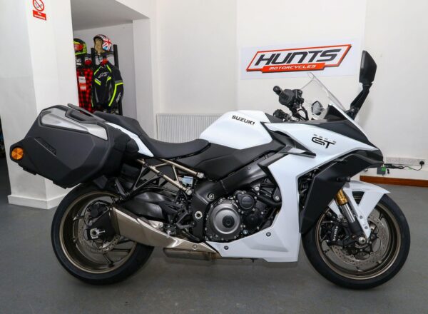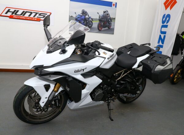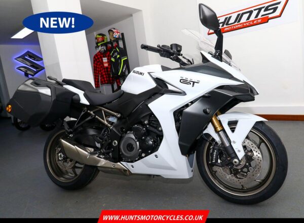NEW Suzuki GSX-S1000GT+ – Finished in Pearl Brilliant White. Just £11,999 on the road including 36 months Suzuki warranty PLUS: FREE mainland UK delivery (Please note: NO ADDITIONAL SERVICE /ADMIN CHARGES. The price you see is the price you pay!). Superbike derived performance paired with the latest technology and all-day comfort allows the new GSX-S1000GT+ to deliver next level sports touring experience for both rider and pillion. The thrilling 152PS, torque-rich powerplant and seamless quickshifter is just the start. A comfortable yet dynamic chassis, hard-luggage capability and cruise control means that miles of breath-taking roads are covered with ease. All this is combined with striking looks, a premium finish and a 6.5” colour TFT display with smartphone connectivity to round off the perfect machine for your next journey. Part-Ex and finance/PCP available, please ask for details. Call Hunts Motorcycles on 0161-432 1303.