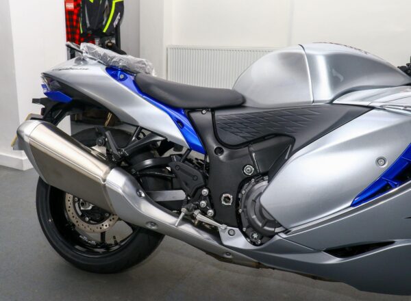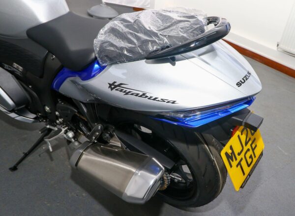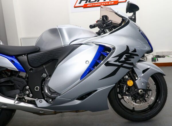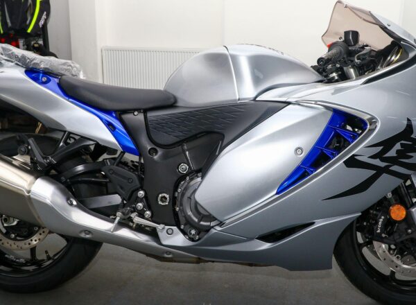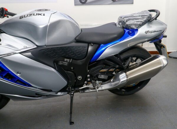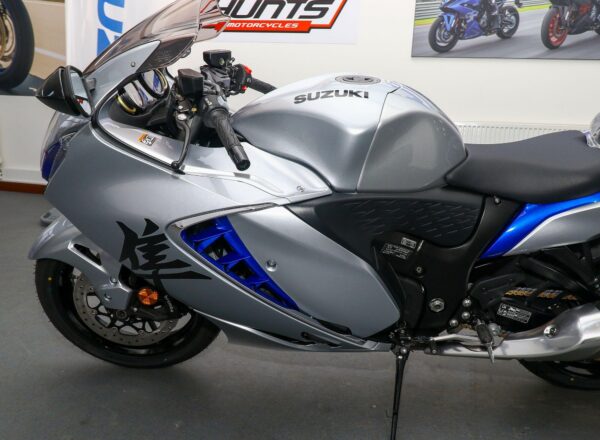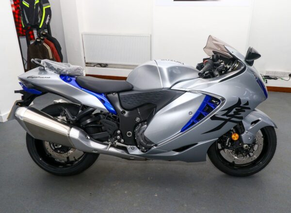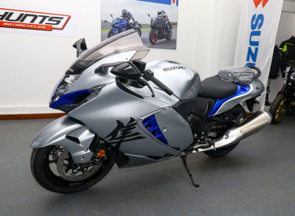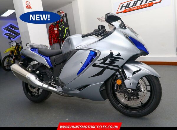 NEW Suzuki Hayabusa – Finished in Metallic Mystic Silver/Pearl Vigor Blue. Just £18,599 on the road including 36 months Suzuki warranty PLUS: FREE mainland UK delivery (Please note: NO ADDITIONAL SERVICE /ADMIN CHARGES. The price you see is the price you pay!). Famed for its abundant power, agility and majestic presence. Legendary for establishing new levels of performance, and for retaining the number one position for the past two decades in the class it created. Fast forward to today. Total commitment and tireless effort give birth to a new generation perfectly poised to carry riders into the future. Its riding experience features even stronger power delivery and responsive handling, a collection of the latest electronic systems designed to optimise performance and make the Hayabusa more controllable and predictable. All this wrapped in a package that will instantly turn heads with its breathtaking style. Part-Ex and finance/PCP available, please ask for details. Call Hunts Motorcycles on 0161-432 1303.