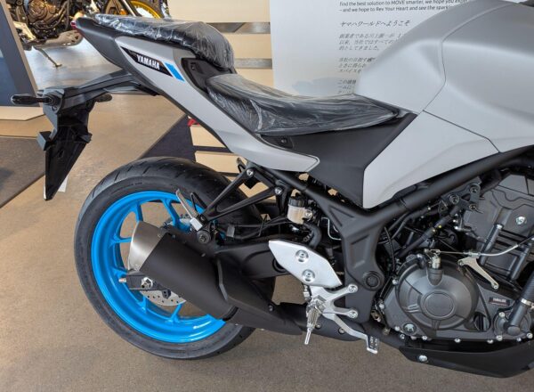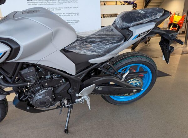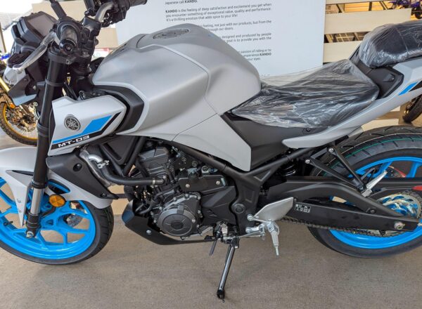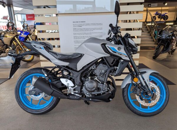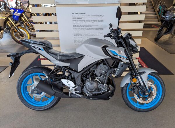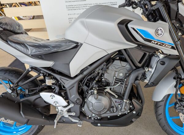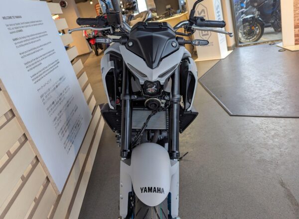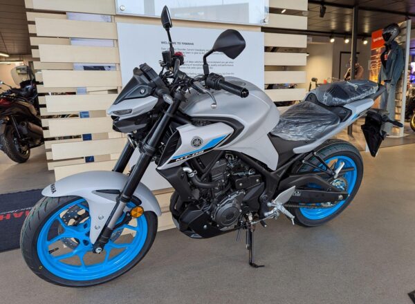LATEST 2025 COLOUR! – New Yamaha MT-03 (A2 Licence Legal) Finished in stunning Ice Storm. £6,250 on the road including FREE MAINLAND UK DELIVERY and Yamaha 36 month warranty. (Please note: NO ADDITIONAL SERVICE /ADMIN CHARGES. The price you see is the price you pay!) – Part-Exchange and finance/PCP available, please ask for details. Inspired by Yamaha’s larger Hyper Nakeds, the aggressive look is more MT than ever. Its predatory twin-eye face projects the moodiest stare, and upside-down forks and a wide-shouldered fuel tank underline the dynamic MT family look to make this the ultimate 300! – Call Hunts Motorcycles on 0161-432 1303