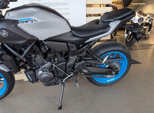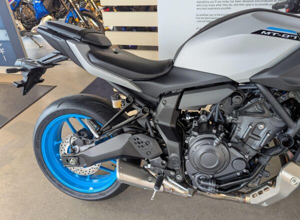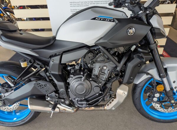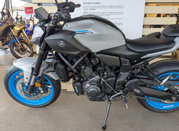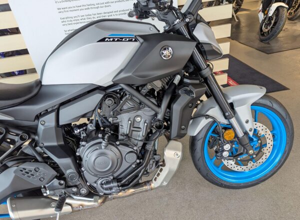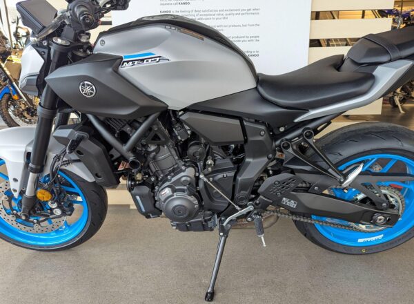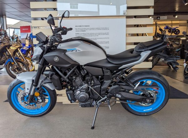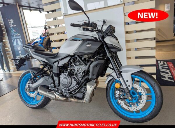 IN STOCK NOW! – NEW 2025 MODEL Yamaha MT-07 in stunning Ice Storm. £7,404 on the road including FREE MAINLAND UK DELIVERY. (Please note: NO ADDITIONAL SERVICE /ADMIN CHARGES. The price you see is the price you pay!) – This latest evolution of the MT-07 features new styling, chassis updates including radially mounted front brake calipers, 41 mm inverted forks and lightweight SpinForged wheels. The compact new look perfectly embodies the MT-07’s stripped-back nature, with a revised and more commanding riding position and a distinctive identity driven by the minimalist LED headlight unit. With engineering and styling in perfect harmony, nothing has been added to the MT-07 unless it truly adds to the riding experience. – Part-Exchange and finance/PCP available, please ask for details. Call Hunts Motorcycles on 0161-432 1303