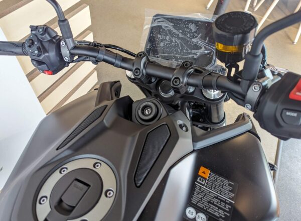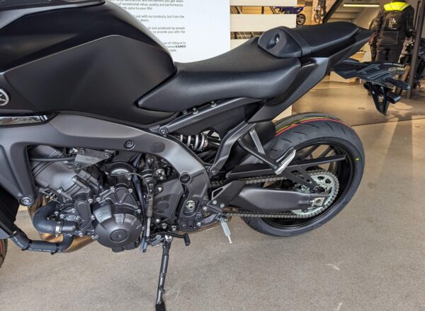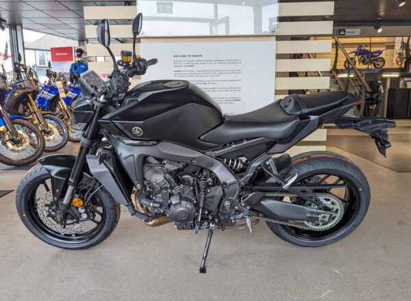 Yamaha MT-09 in Tech Black. With its more aggressive look, refined riding position and cutting-edge tech, Yamaha has taken the MT-09 to the next level of Darkness. £10,100 on the road including FREE MAINLAND UK DELIVERY. (Please note: NO ADDITIONAL SERVICE /ADMIN CHARGES. The price you see is the price you pay!) – Part-Exchange and finance/PCP available, please ask for details. Call Hunts Motorcycles on 0161-432 1303