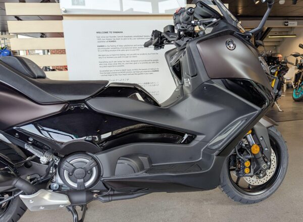 IN STOCK NOW! – NEW Yamaha TMAX Tech MAX. Dark Magma. £14,000 on the road including Yamaha 36 month warranty PLUS: FREE MAINLAND UK DELIVERY. (Please note: NO ADDITIONAL SERVICE /ADMIN CHARGES. The price you see is the price you pay!). With advanced technology, innovative design and outstanding quality, the new TMAX Tech MAX is your ultimate sport scooter. Its best-in-class specification includes an electric screen, cruise control, heated grips and seat – plus full connectivity with My TMAX Connect. PLUS : UK MAINLAND DELIVERY IS FREE! – Part-Exchange and finance/PCP available, please ask for details. Call Hunts Motorcycles on 0161-432 1303.